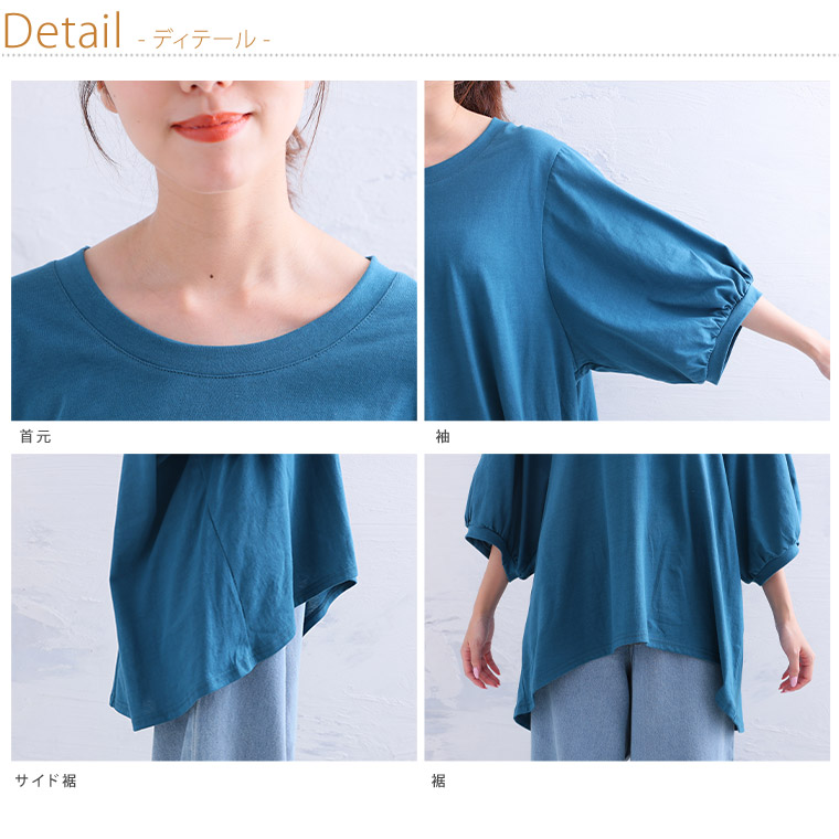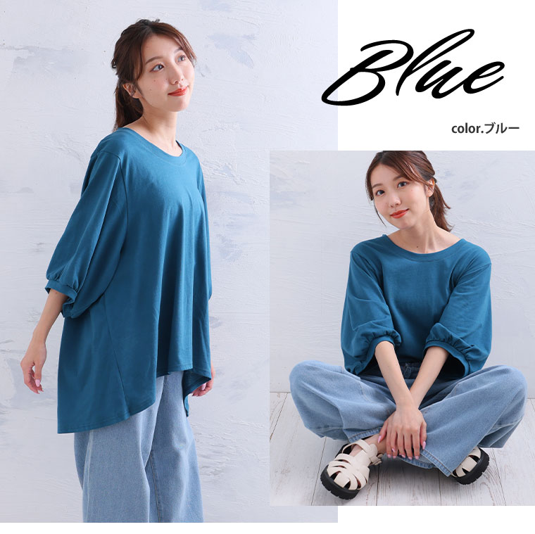 トップス カットソー プルオーバー LL 3L 4L 夏 夏物 夏服 夏用 バルーントップス 体型カバー コクーン ぽっちゃり ゆったり プラスサイズ バルーンスリーブ 七分袖 プルオーバー