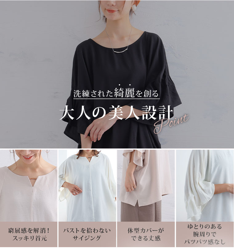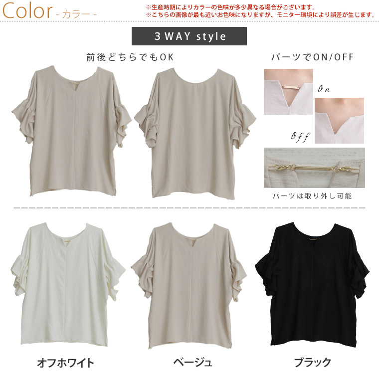 【Rin】3WAY華奢魅せポーラ袖タックブラウス