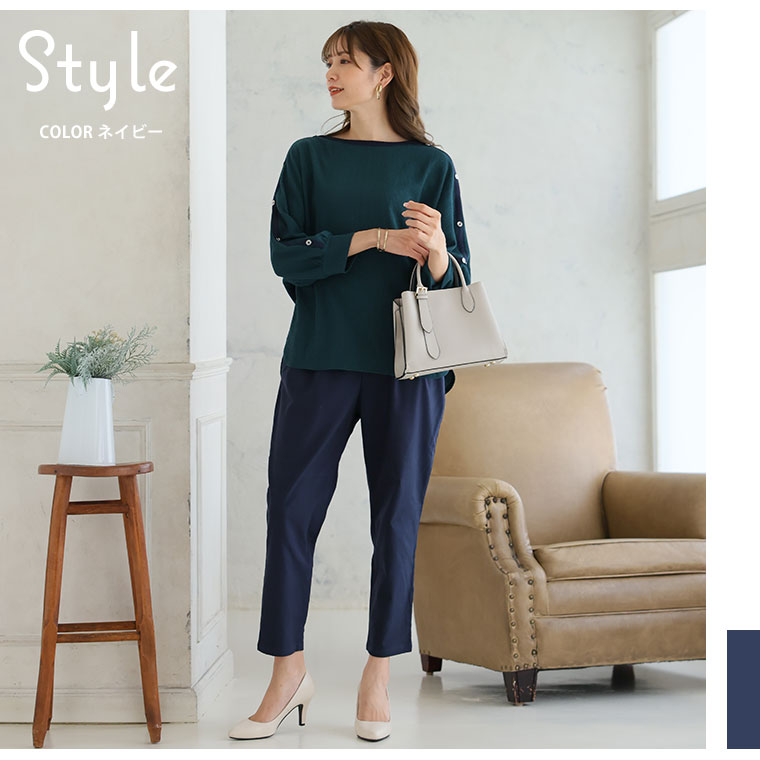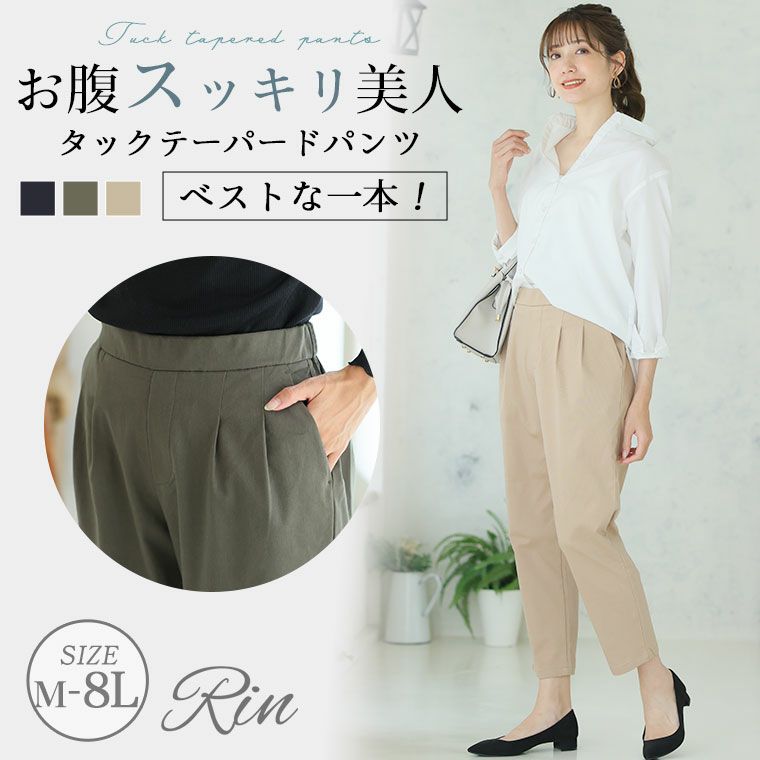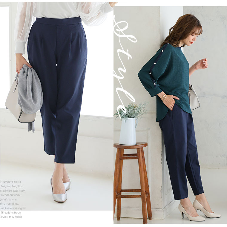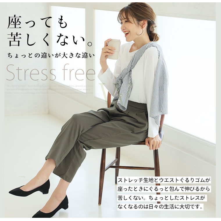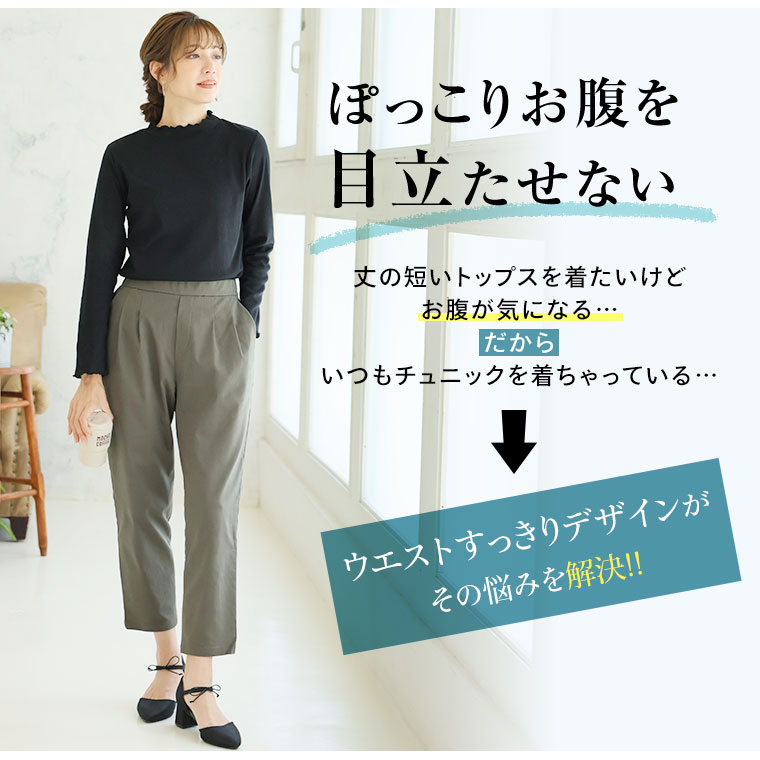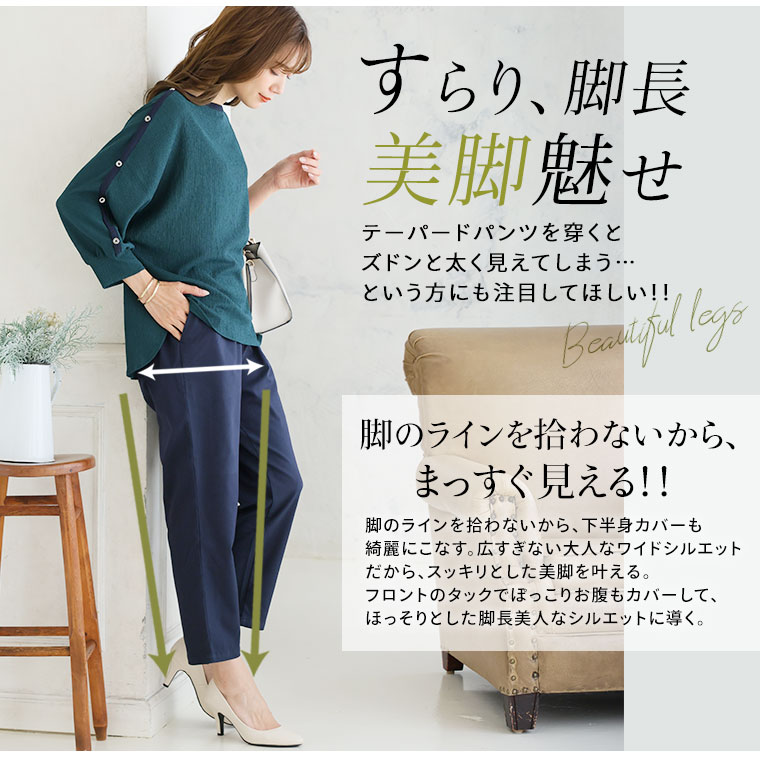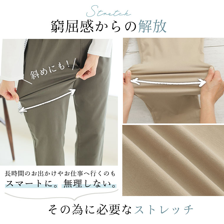 ストレッチ生地と360度ゴム仕様で楽ちんも叶うテーパードパンツ