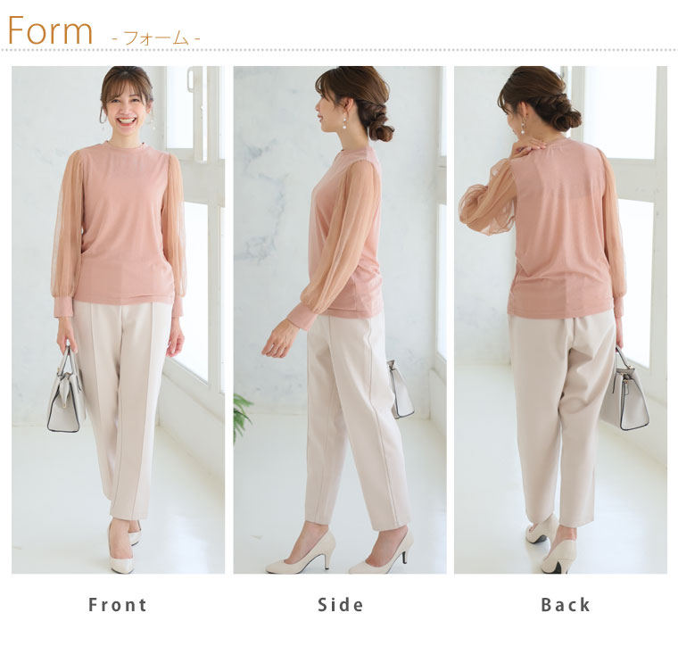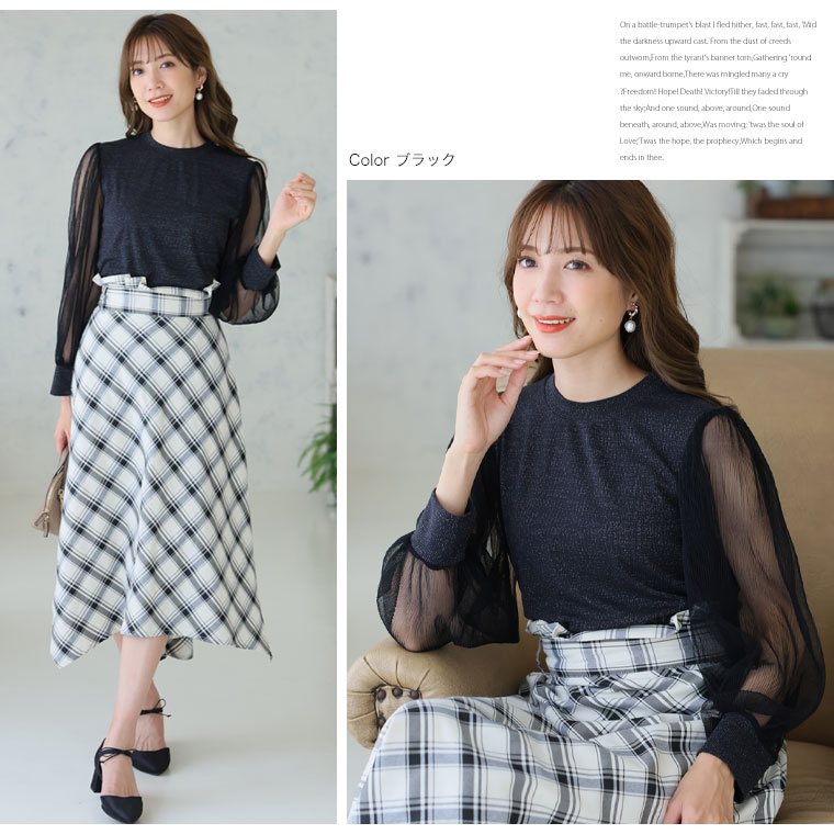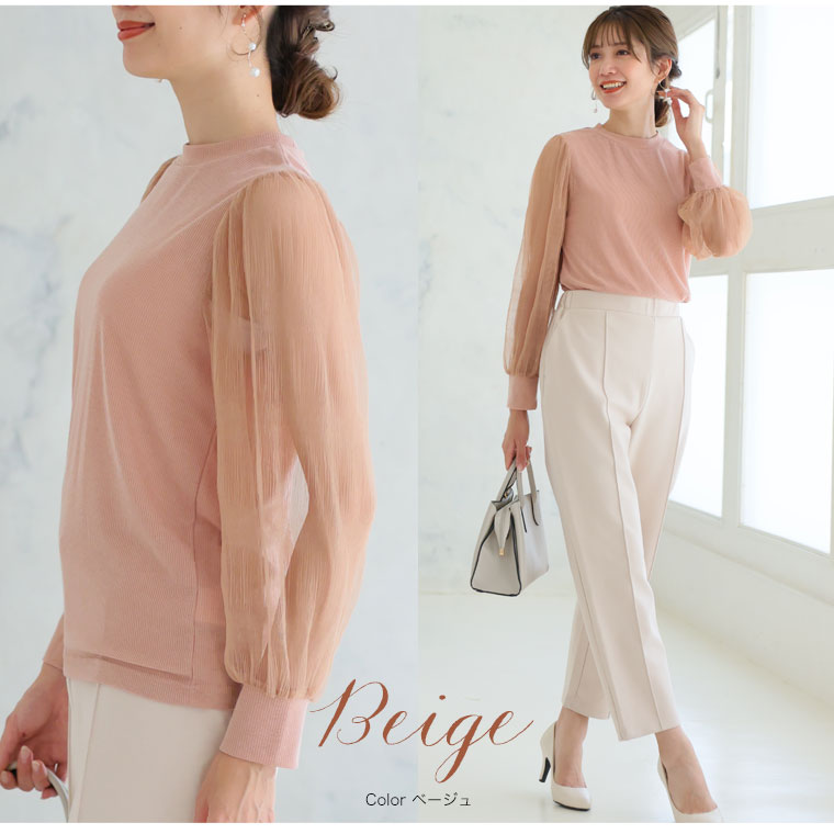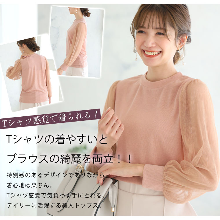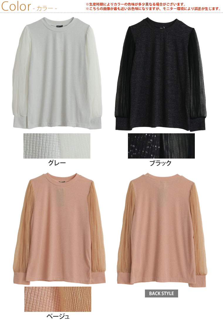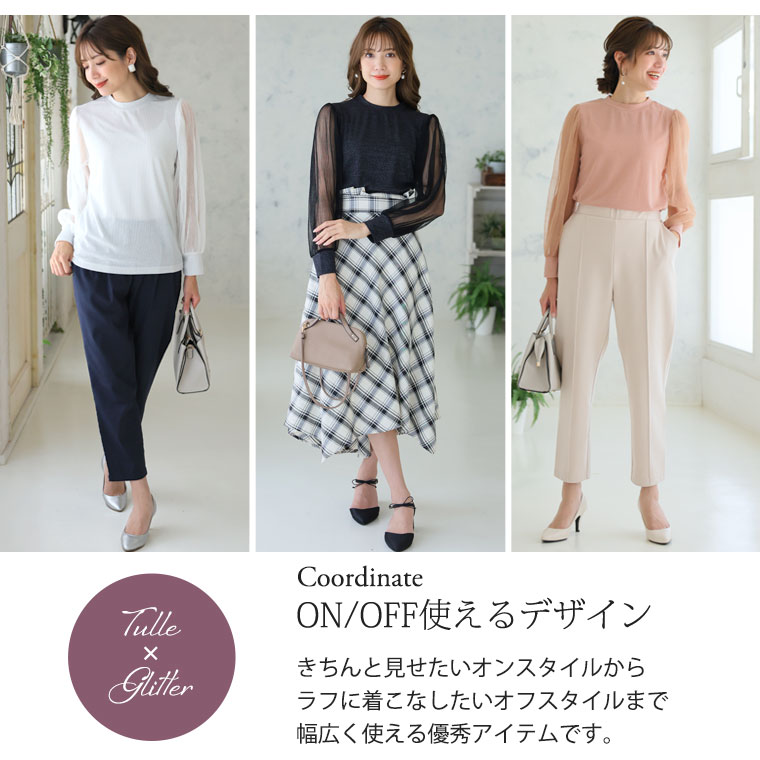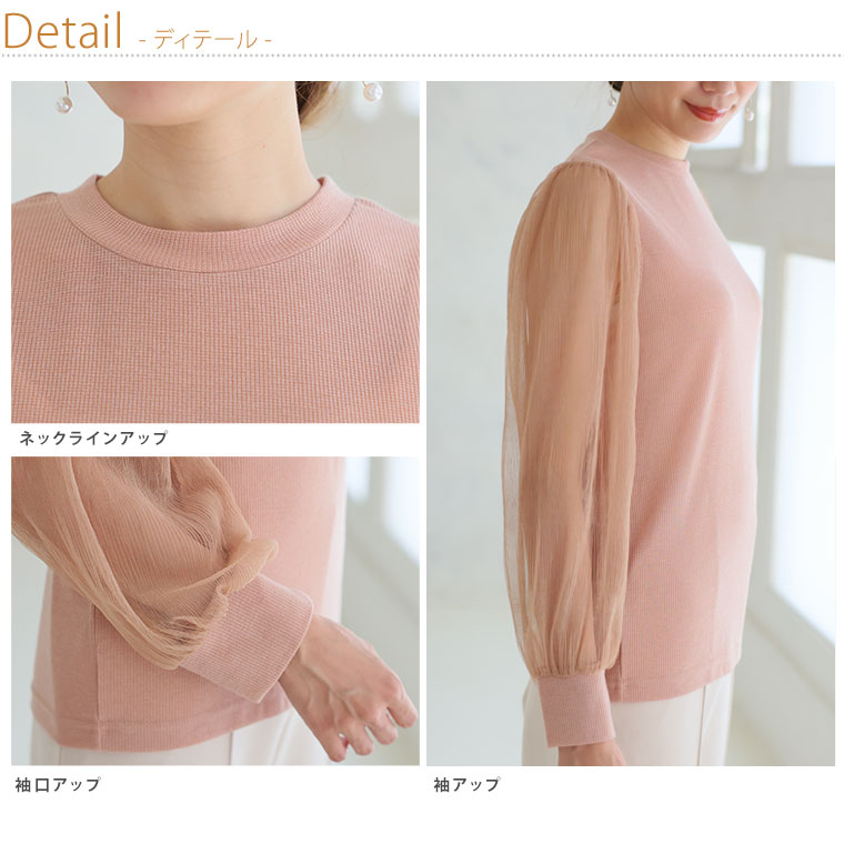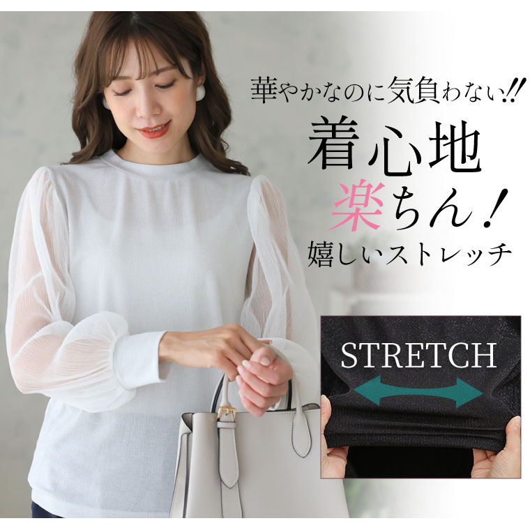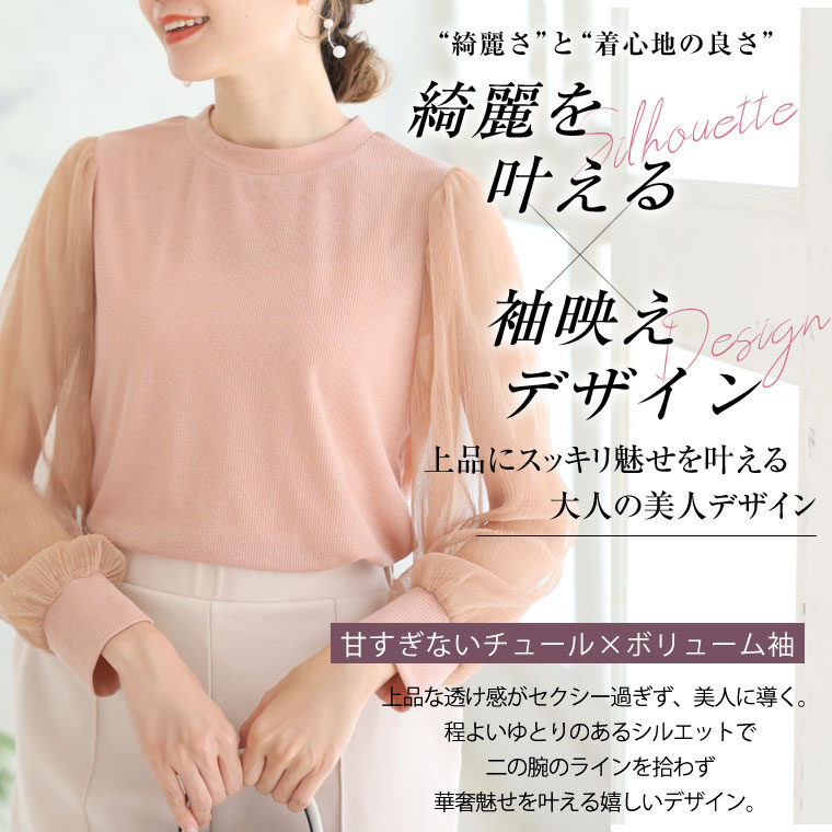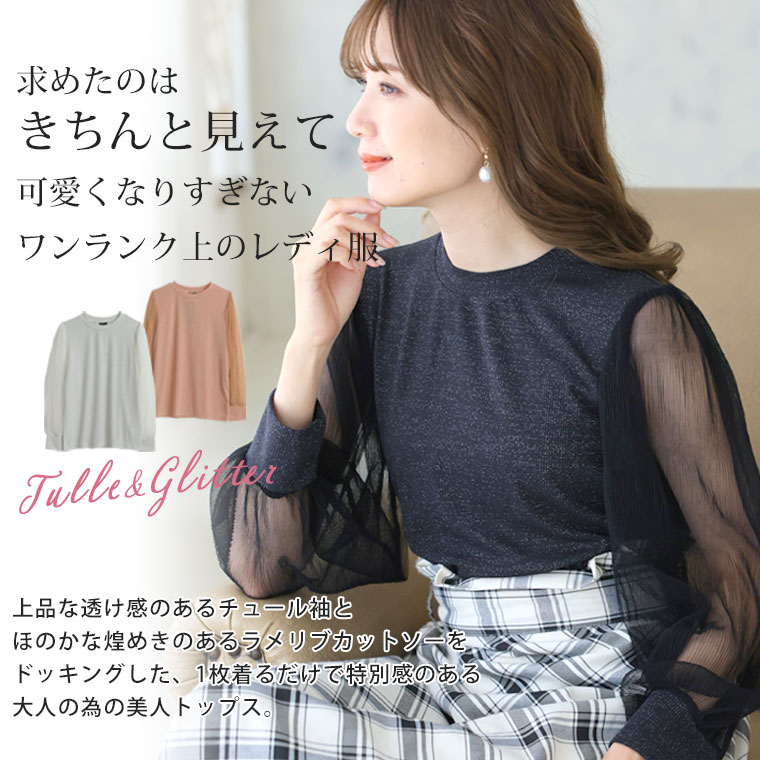 上品な透け感のあるチュール袖×ほのかな煌めきのあるラメリブカットソー