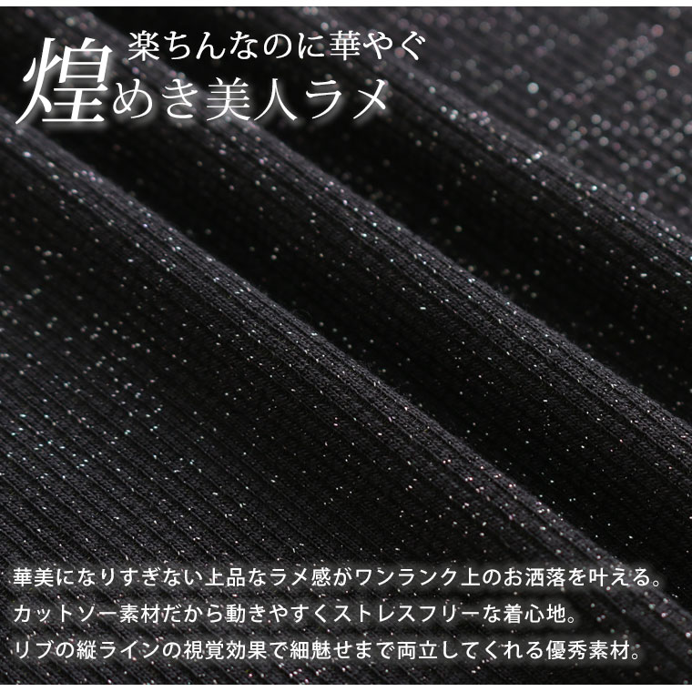 4. 大きいサイズ Rin 大人の上品華やぎ ラメリブ袖 チュール切替トップス