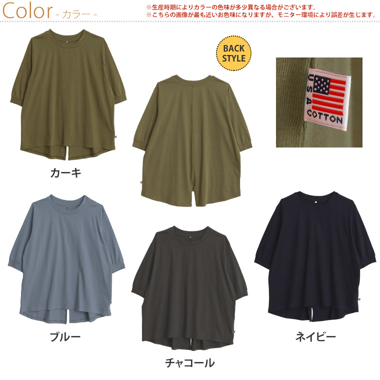 【好きですコットン】シリーズ バックスリットデザイントップス