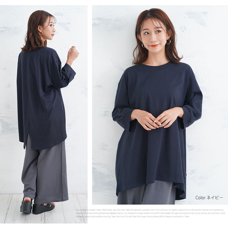 トップス カットソー プルオーバー LL 3L 4L 5L 秋 秋物 秋服 冬 冬物 冬服 ぽっちゃり ゆったり プラスサイズ カジュアル ナチュラル お腹 お尻 【好きですコットン】 後ろスリット プルオーバー