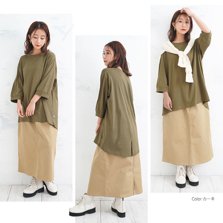 ■着用感:ちょうどいい、■着丈:お尻すっぽり、■バスト:ちょうどいい、■腕回り:ちょうどいい、■袖口:ちょうどいい、■袖丈:7分、首回りちょうどいい、■ウエスト:-、■ヒップ:-、■太もも:- ●ゆったりすぎず体型を拾わない丁度いいサイズ感が気に入りました!