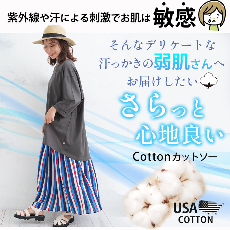 上質コットンで汗や紫外線で敏感になってお肌も優しく包む サラッと心地良いカットソー