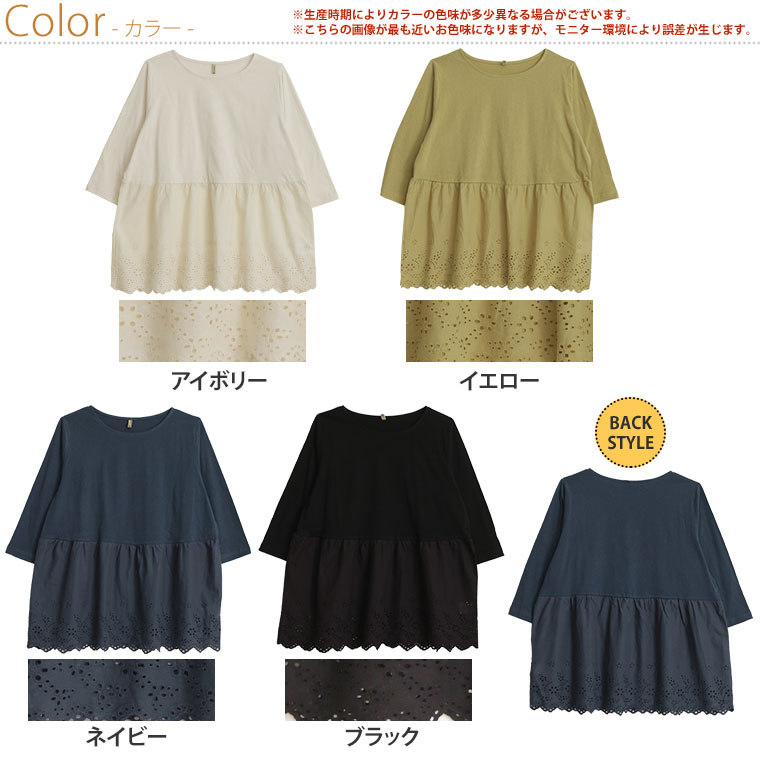4. 大きいサイズ 刺繍 レース ペプラム プルオーバー