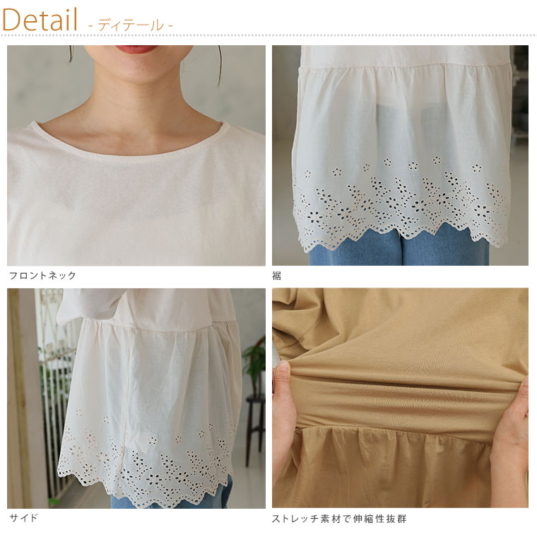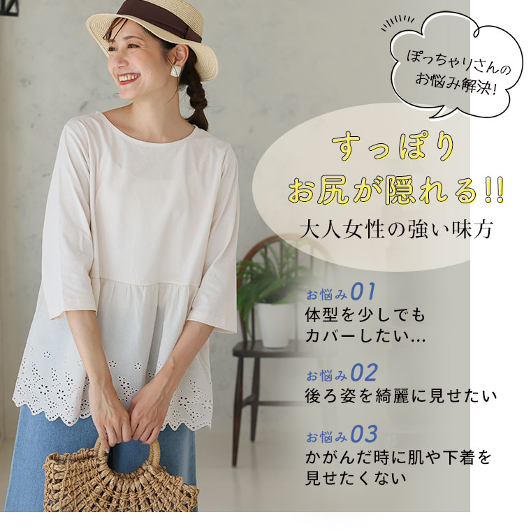 お洒落にお尻をカバー!刺繍レースプルオーバー