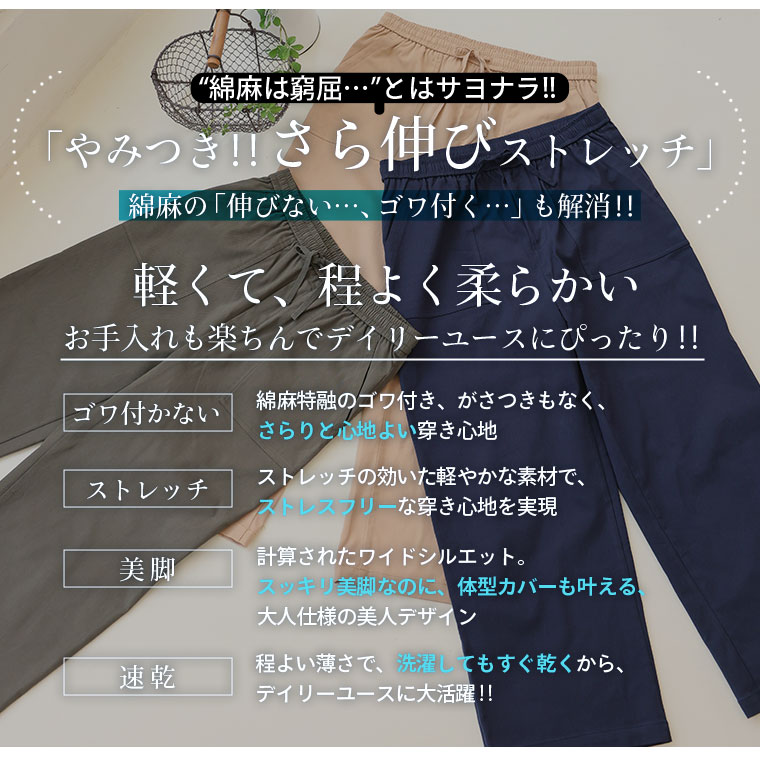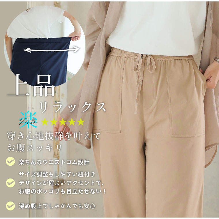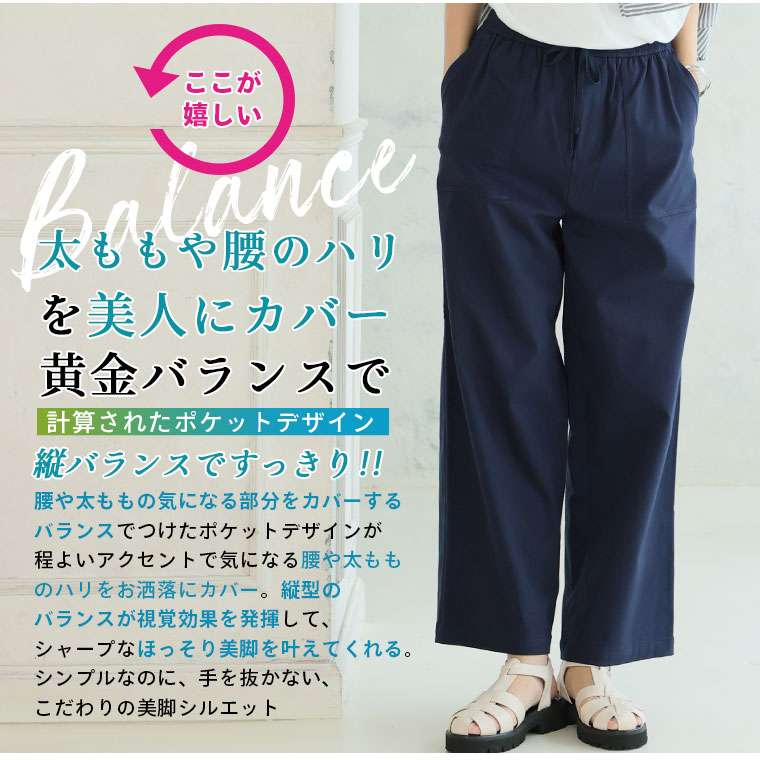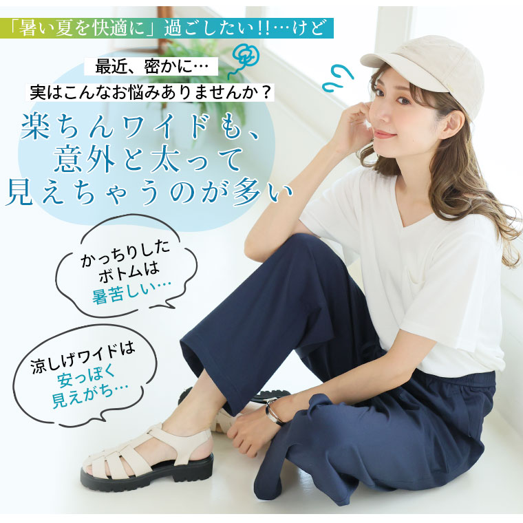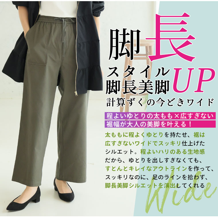 広すぎないワイドで体型カバーをしながら、ちゃんと美脚に仕上げる毎日楽ちん美人なパンツ