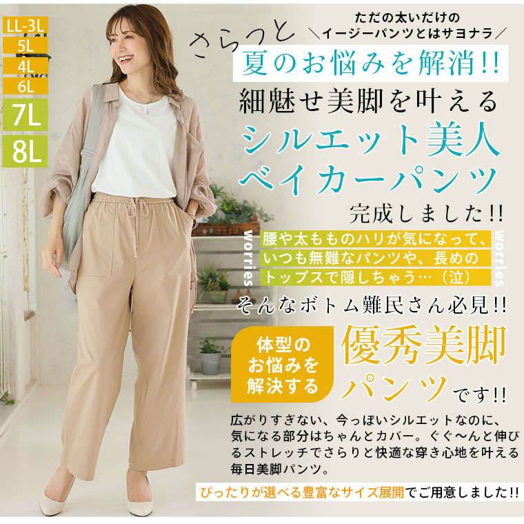 穿き心地抜群を叶えてお腹スッキリ楽ちん美脚ストレッチベイカーパンツ