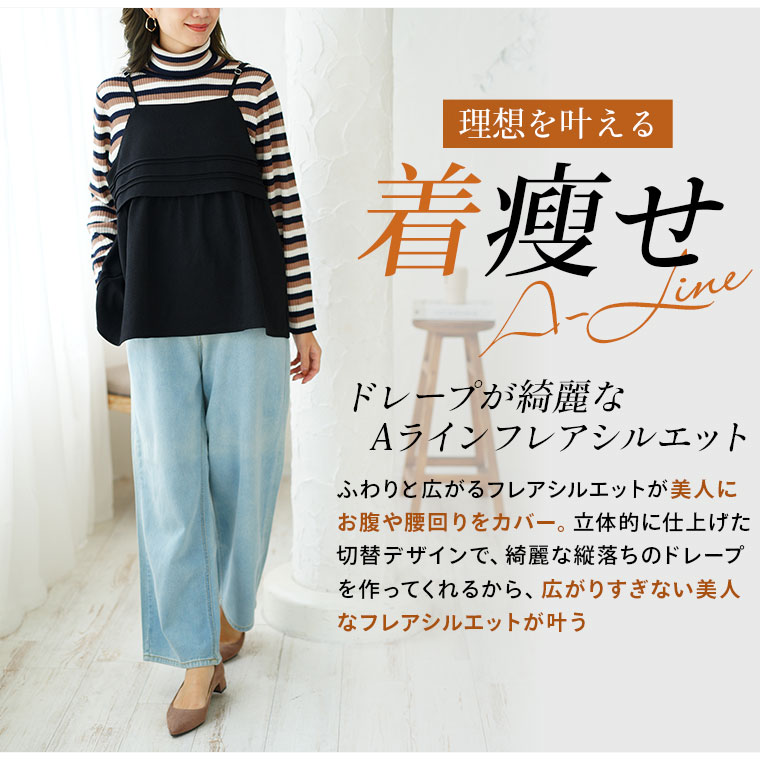 ふわりと広がるフレアシルエットが美人にお腹や腰回りをカバー