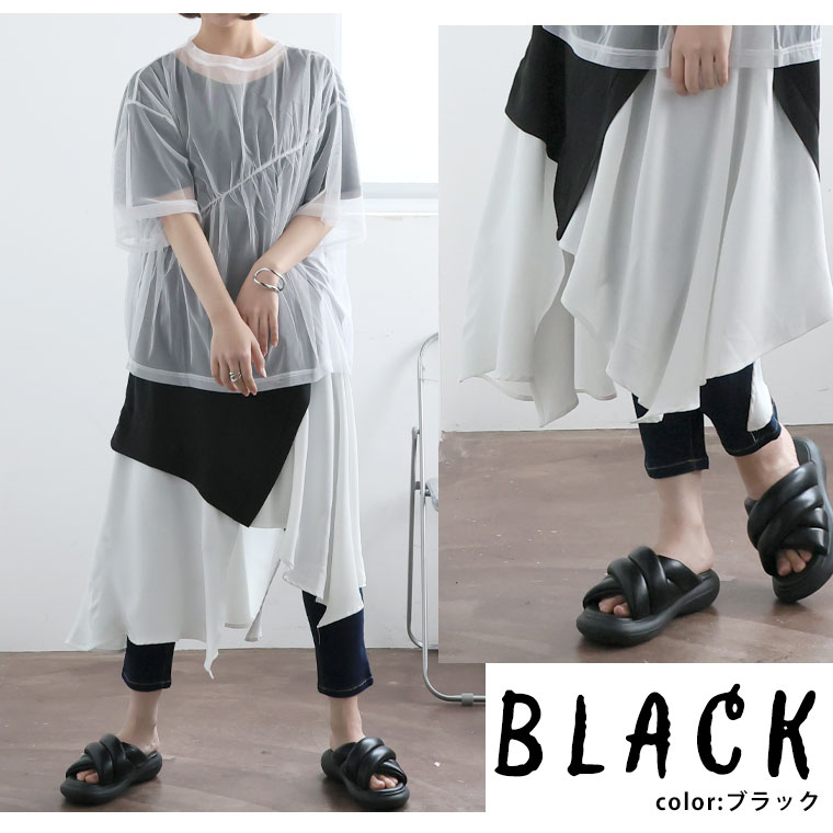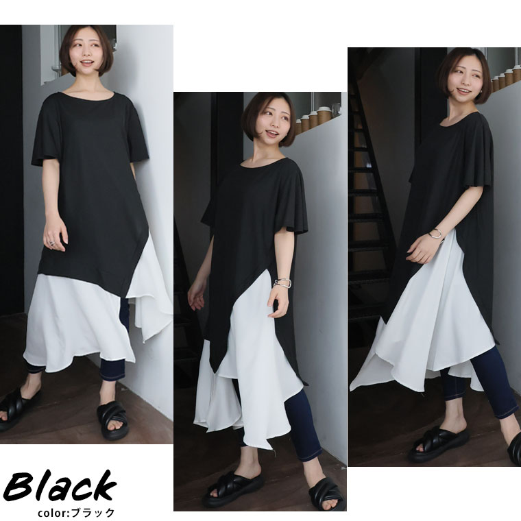6. 大きいサイズ ランダム切替え スラリ魅せ ロング丈 チュニック