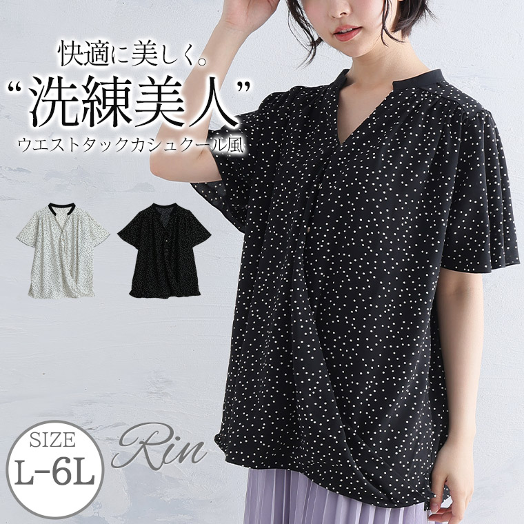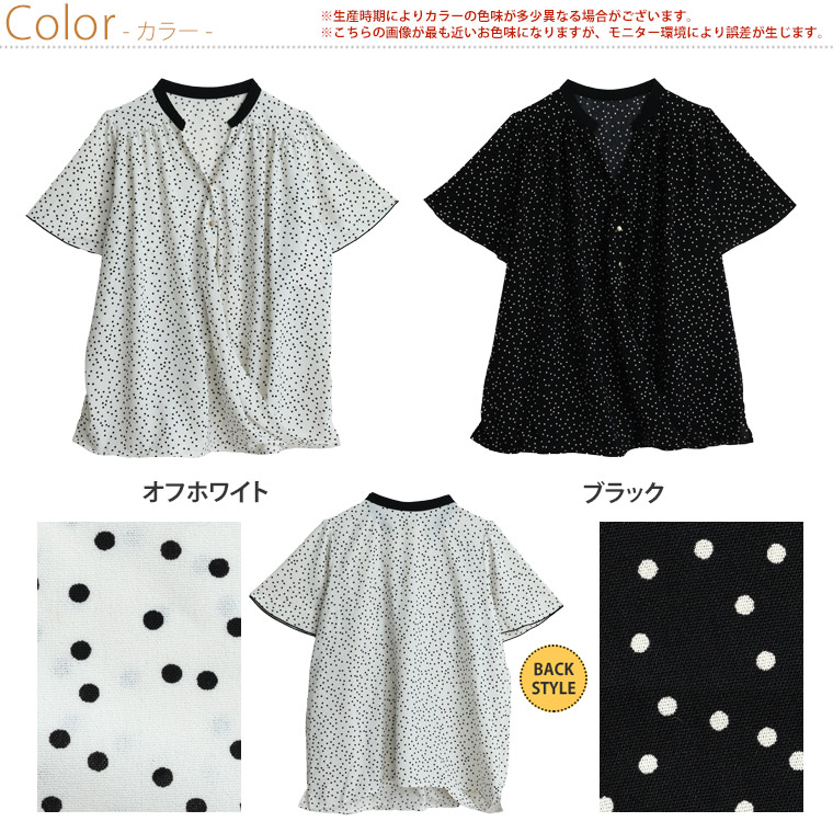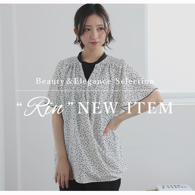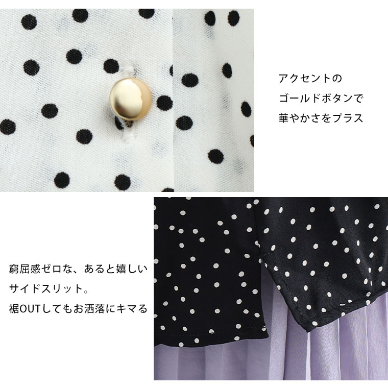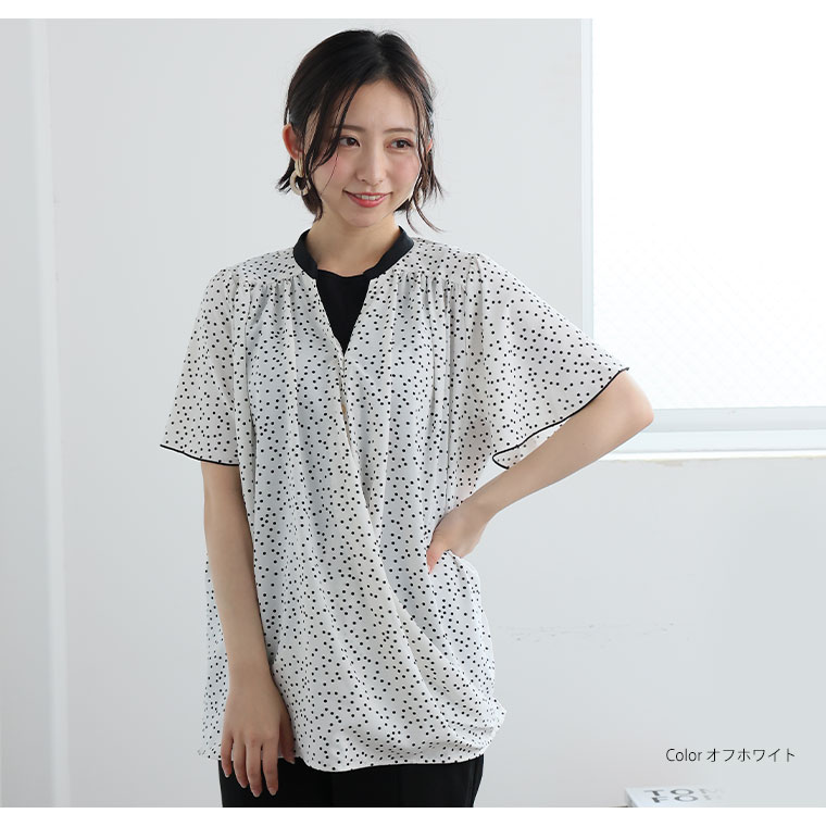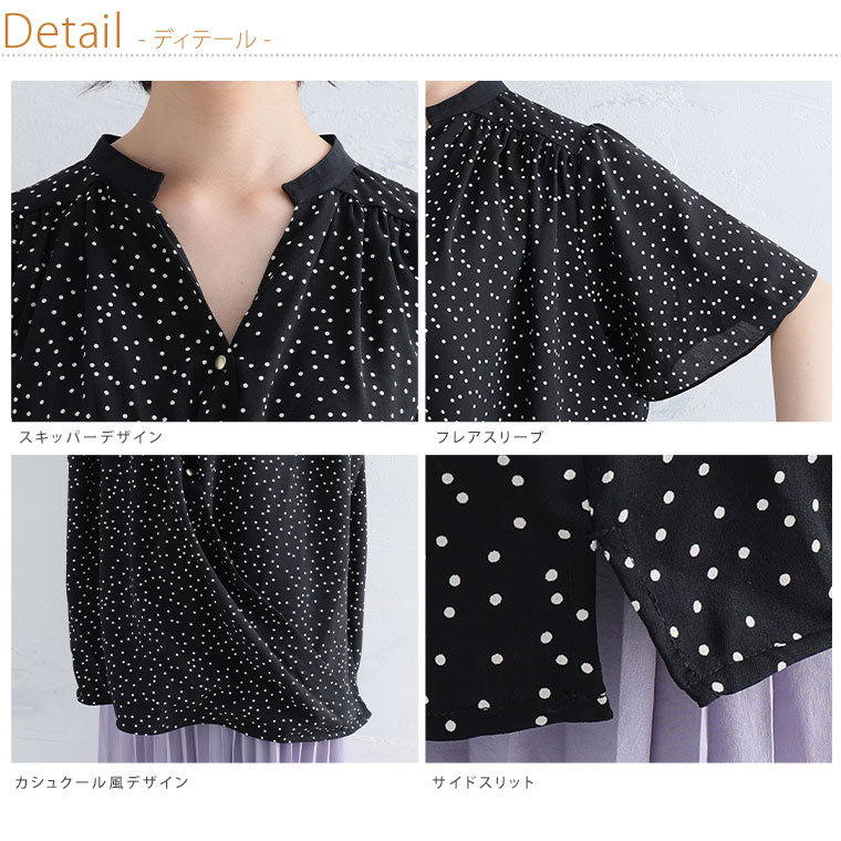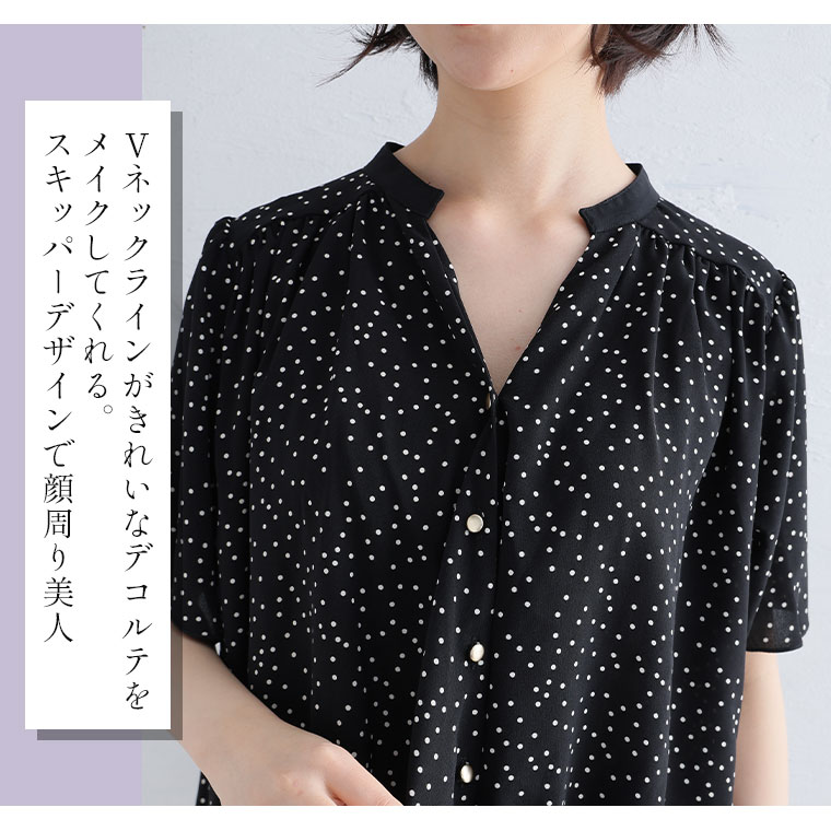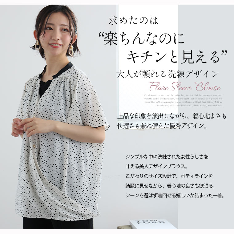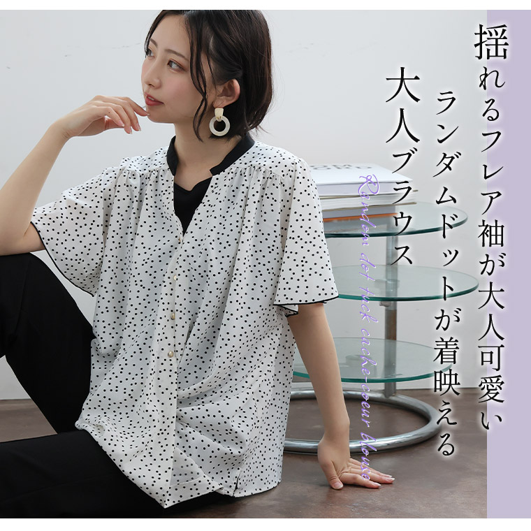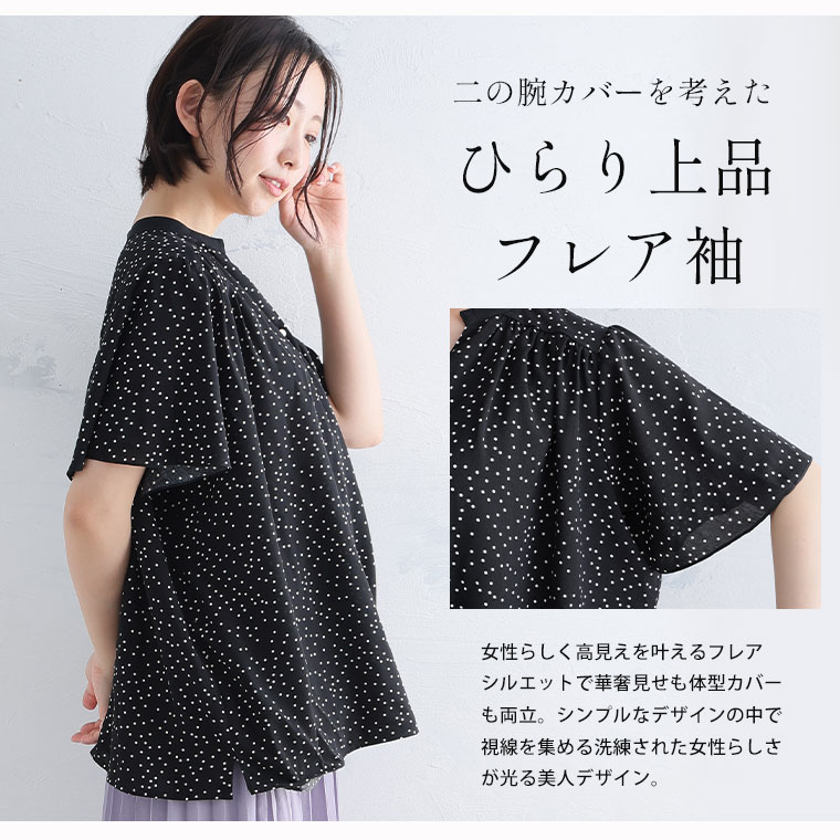 【Rin】ひらりフレアスリーブが上品なドット柄ブラウス