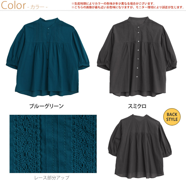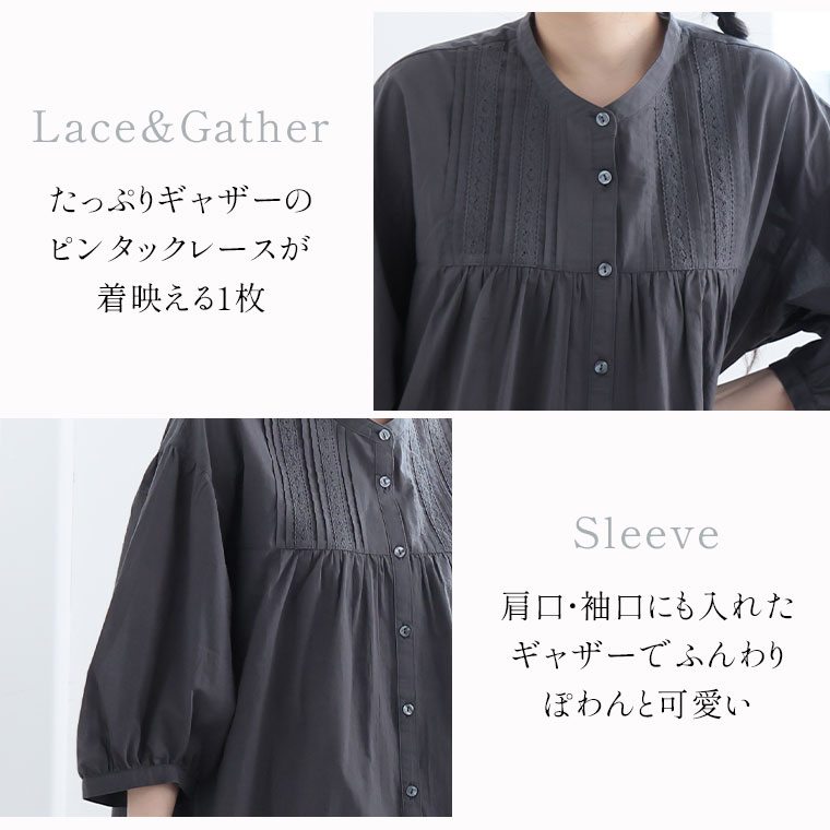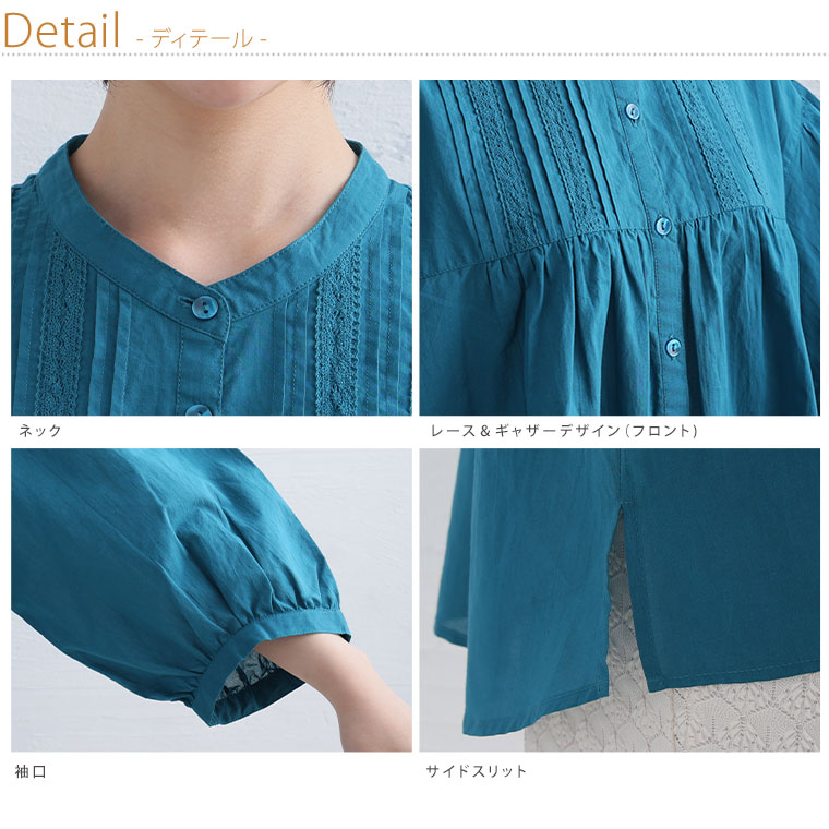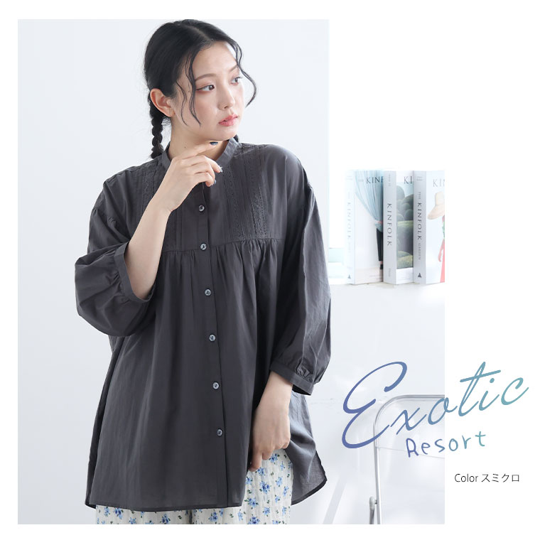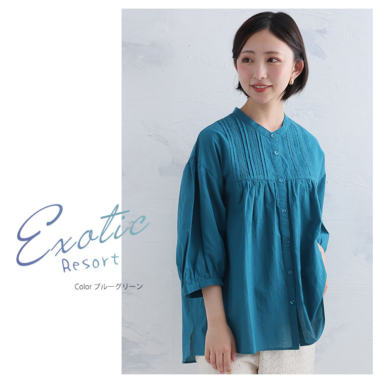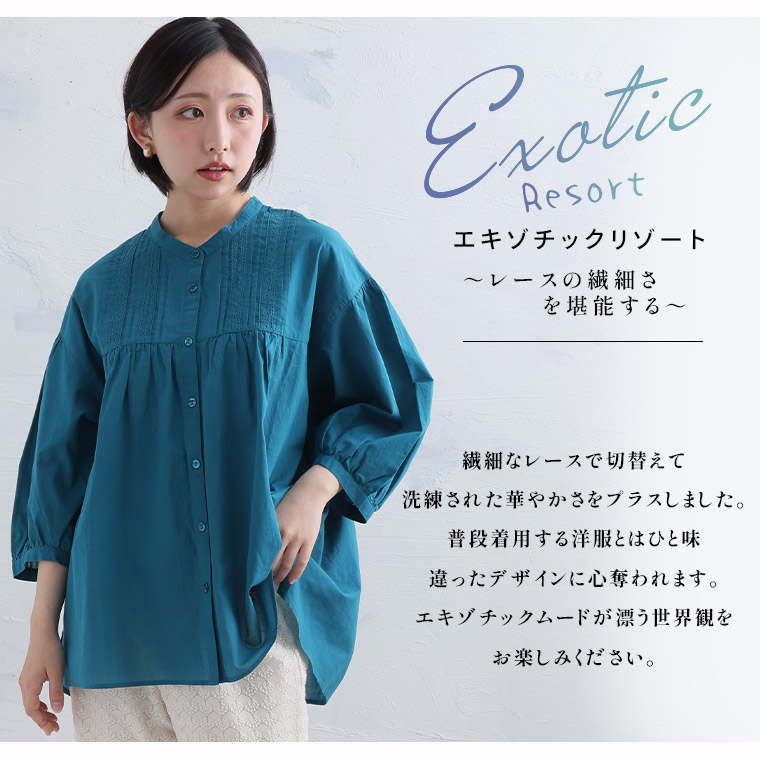 【エキゾチックリゾート】ふわっと軽やかなコットンピンタックレースブラウス