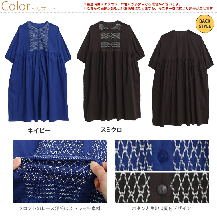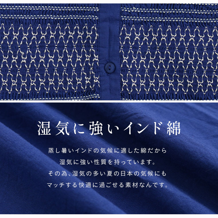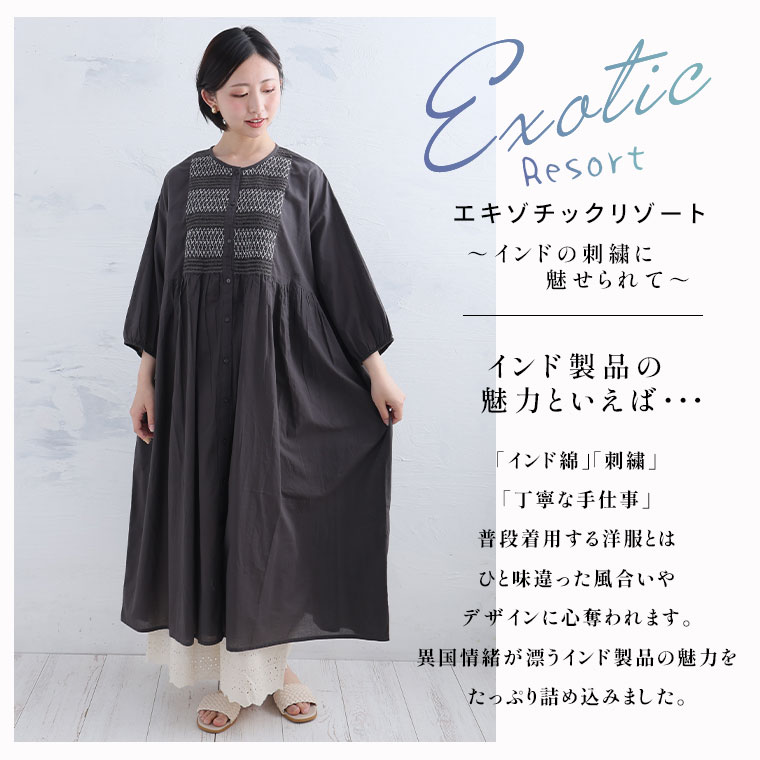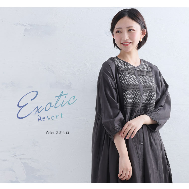 【エキゾチックリゾート】さらり快適な着心地 配色シャーリング使いワンピース