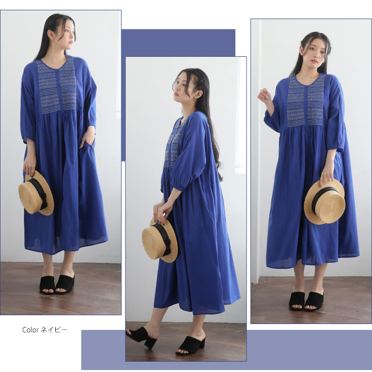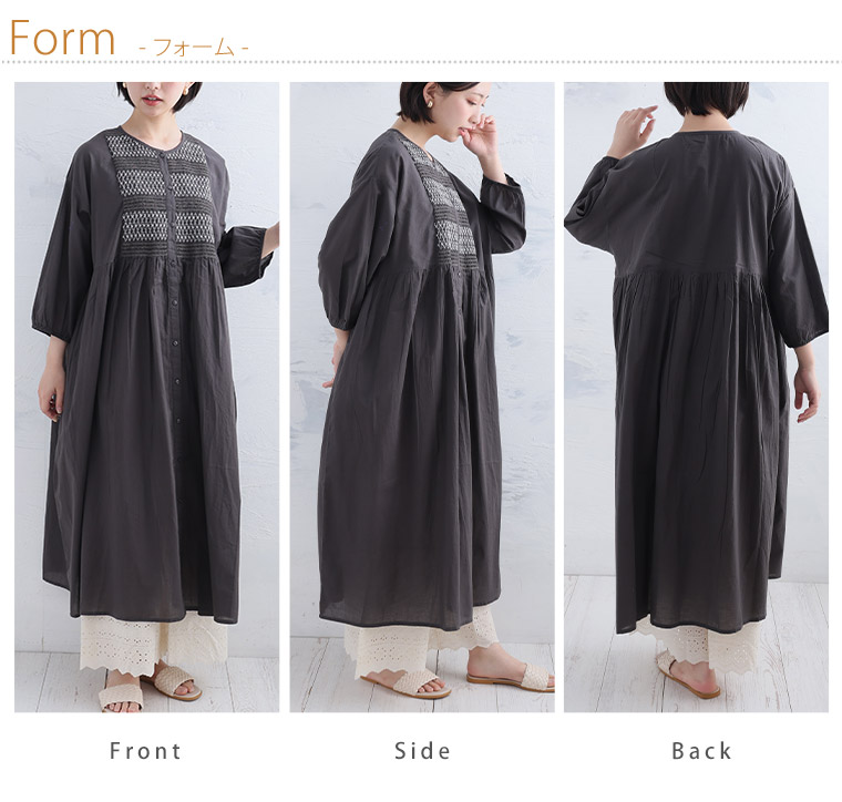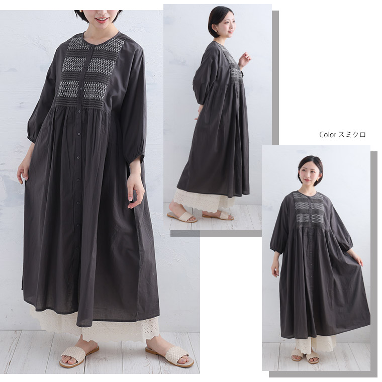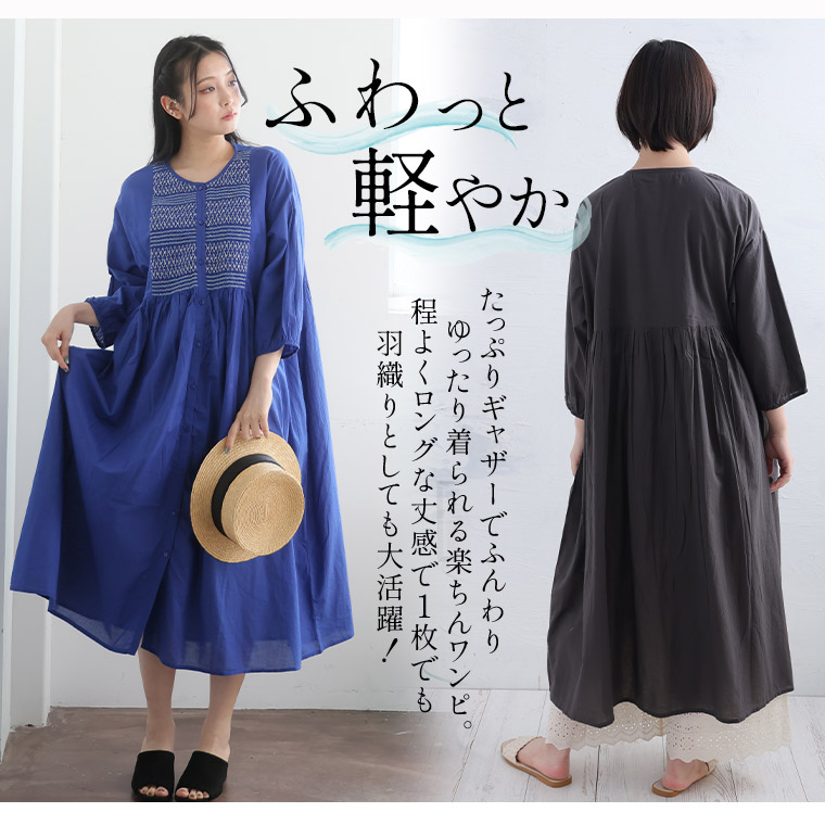 ふんわり軽やかなロングワンピースで気になる体型をカバー。さらっと羽織りにも便利
