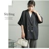 ライトアウター コート LL 3L 4L 5L 6L 半袖 五分袖 夏 夏物 夏服 夏用 ぽっちゃり ゆったり プラスサイズ お尻 二の腕カバー 大人のこなれ感 リネンライク ゆる テーラード ダブルボタン ジャケット | 大きいサイズの通販ならハッピーマリリン