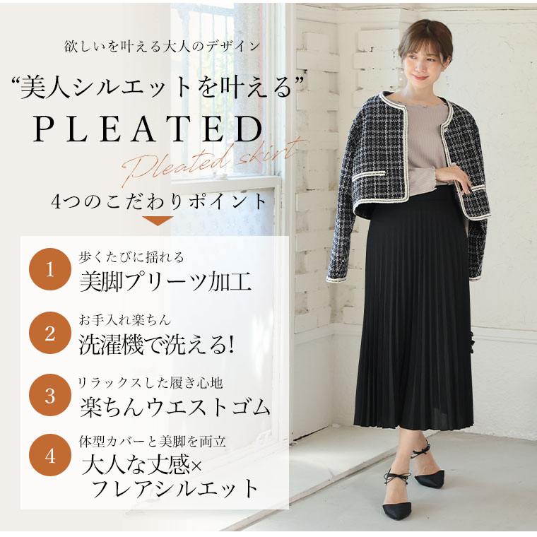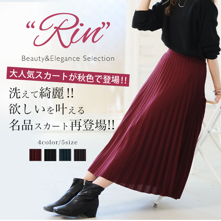 4. 大きいサイズ Rin ざぶざぶ洗える! 綺麗が続く アコーディオン プリーツスカート