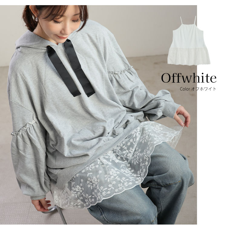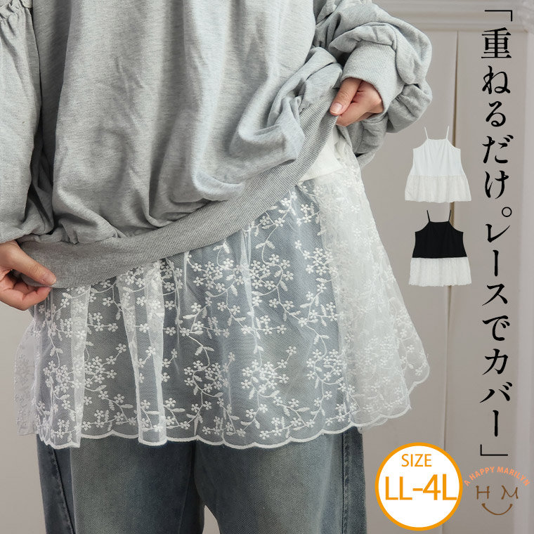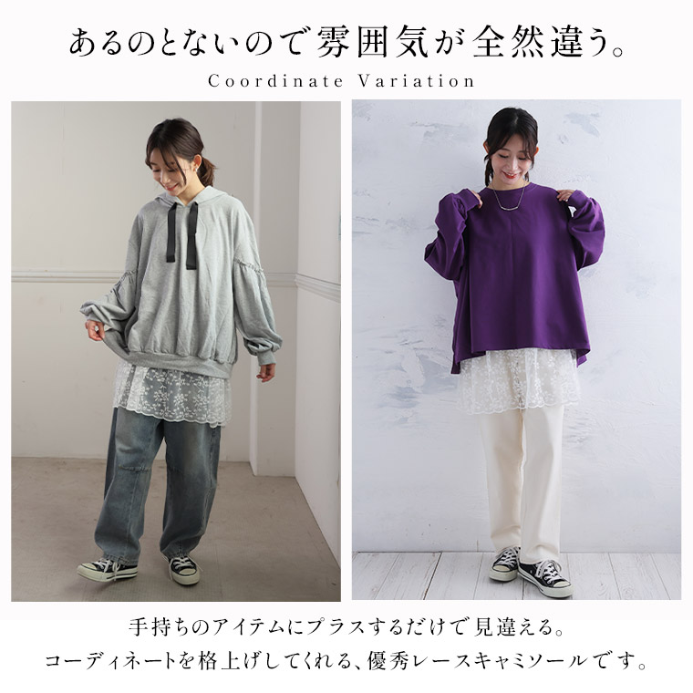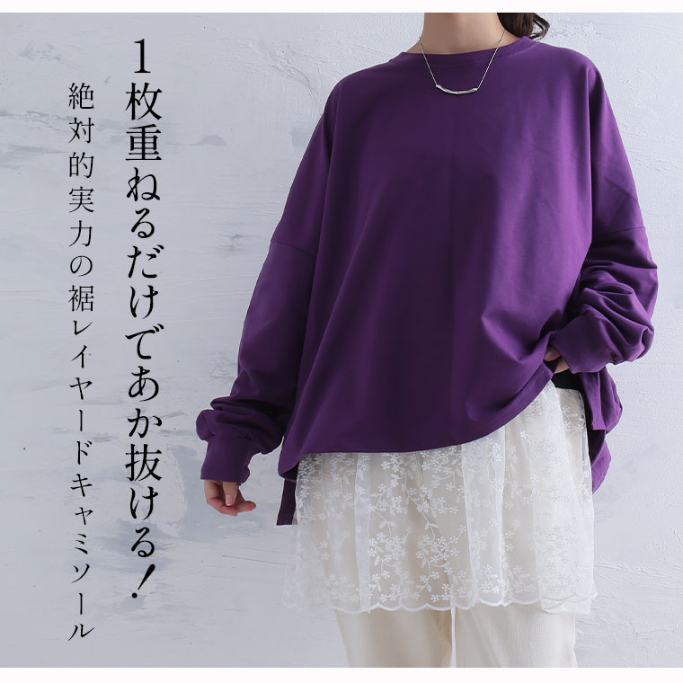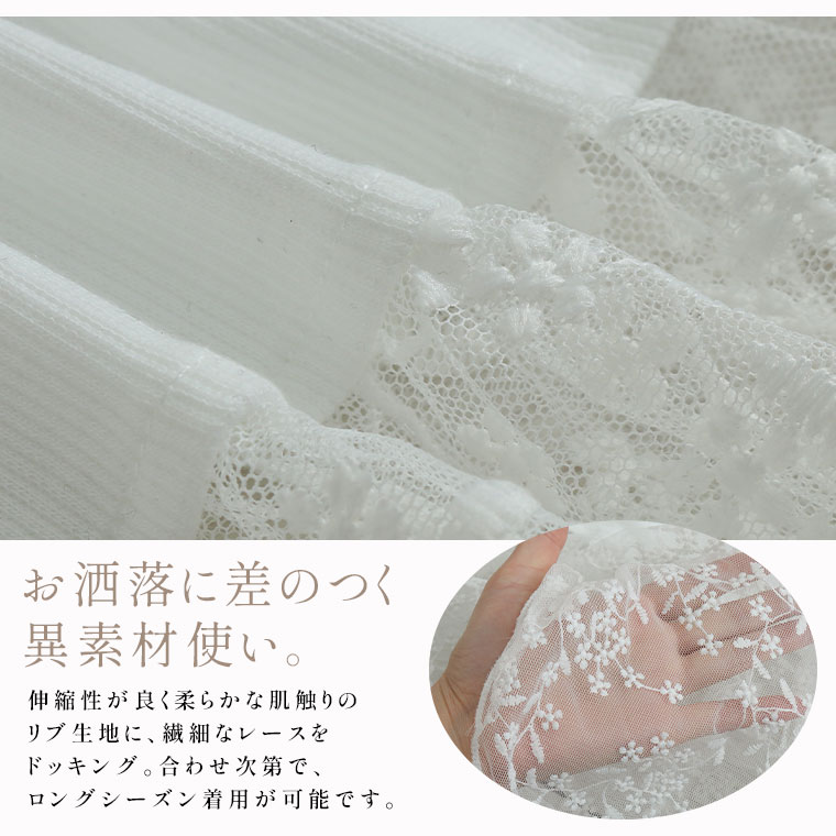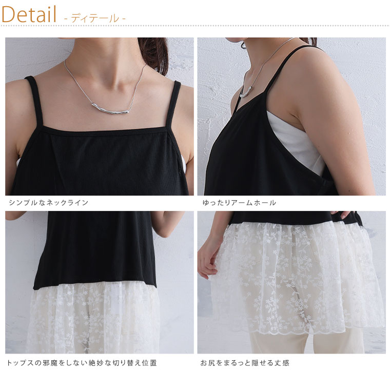 1枚重ねるだけでオシャレに着映える テレコリブ×裾レースキャミソール