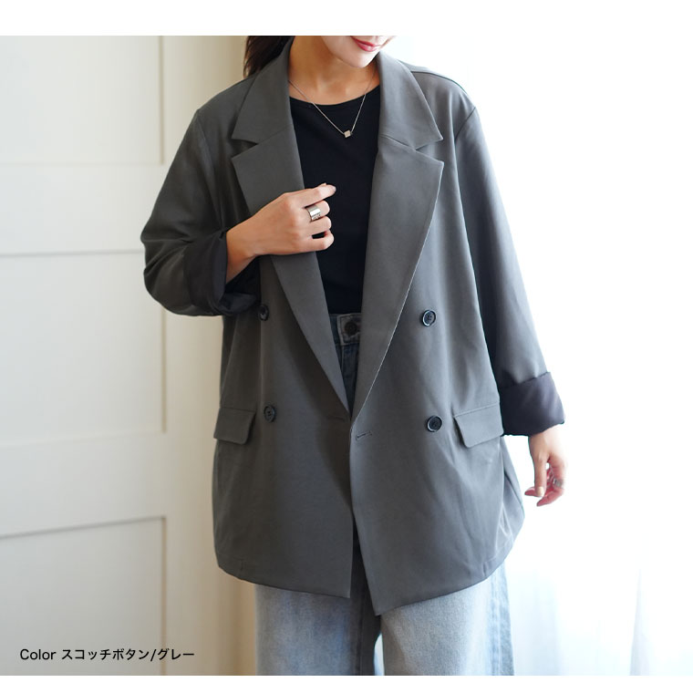 4. 大きいサイズ お仕事・行事・カジュアルまで幅広く使える! 働くママの味方 ダブル ジャケット ゴールドボタン 金ボタン