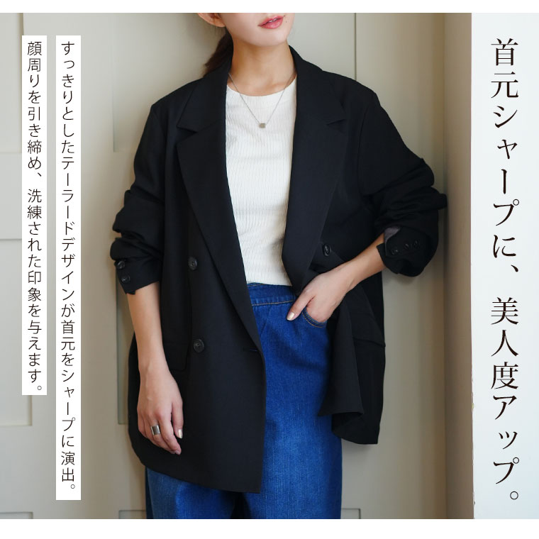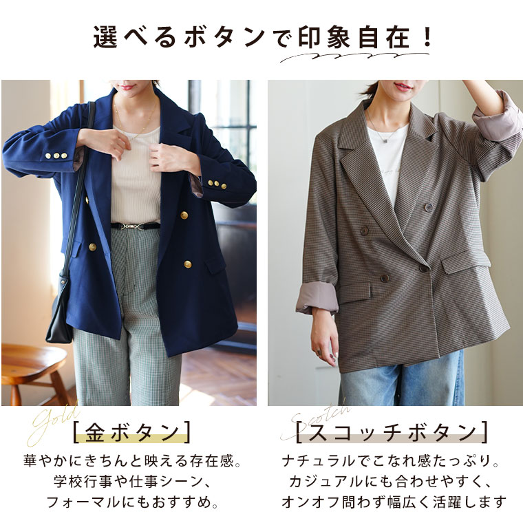 3. 大きいサイズ お仕事・行事・カジュアルまで幅広く使える! 働くママの味方 ダブル ジャケット ゴールドボタン 金ボタン