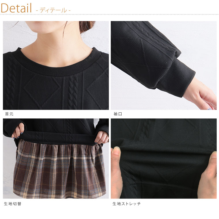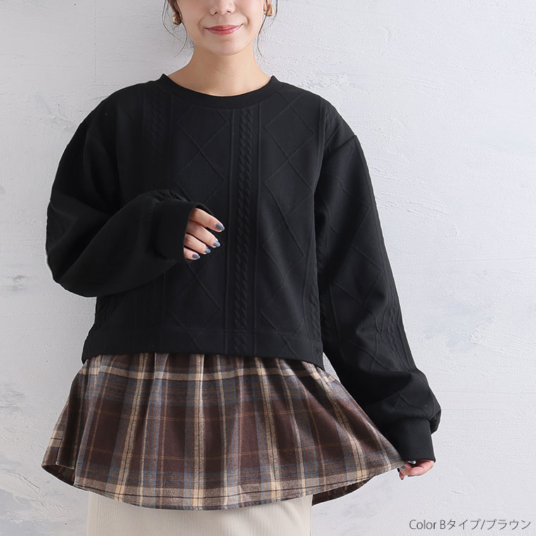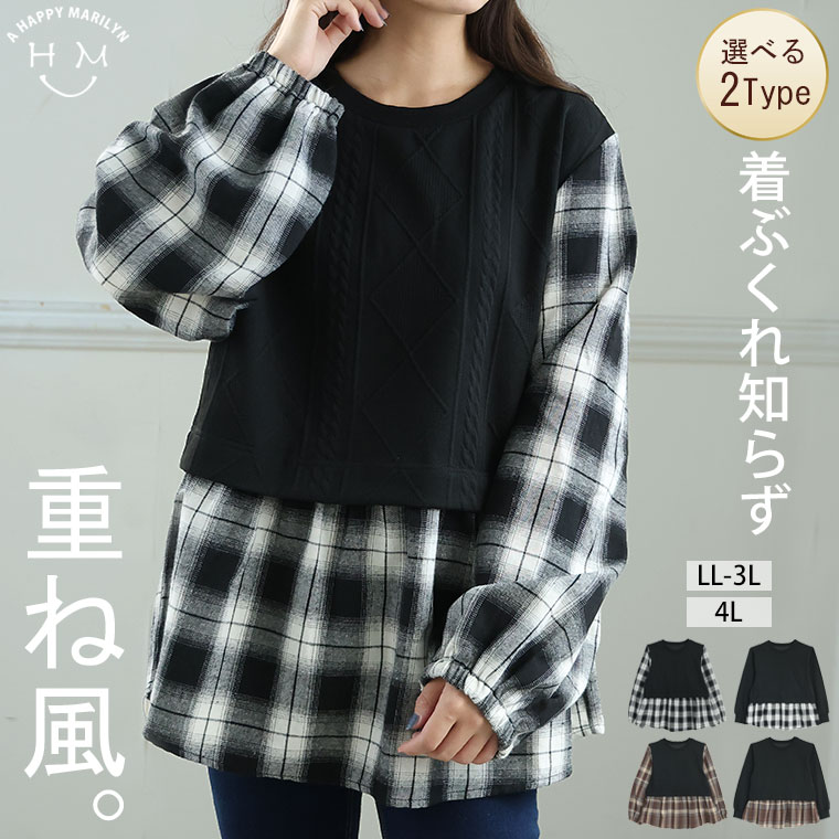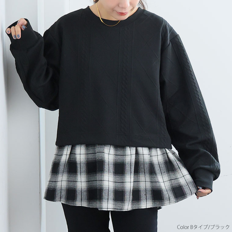 トップス シャツ LL 3L 4L 長袖 秋 秋物 秋服 冬 冬物 冬服 ぽっちゃり ゆったり プラスサイズ 異素材素材 ケーブル ぽわん袖 お腹 お尻 ふくれジャガード ドッキングブラウス