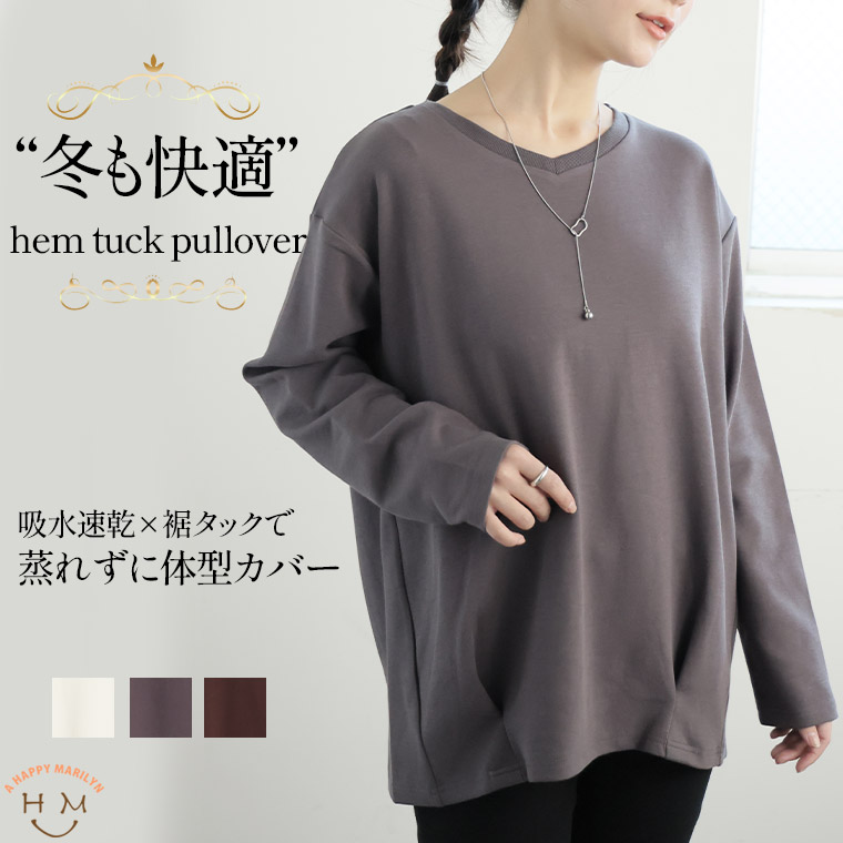 の蒸れ蒸れ汗も快適!前身切替え 裾タック プルオーバー