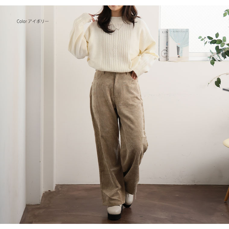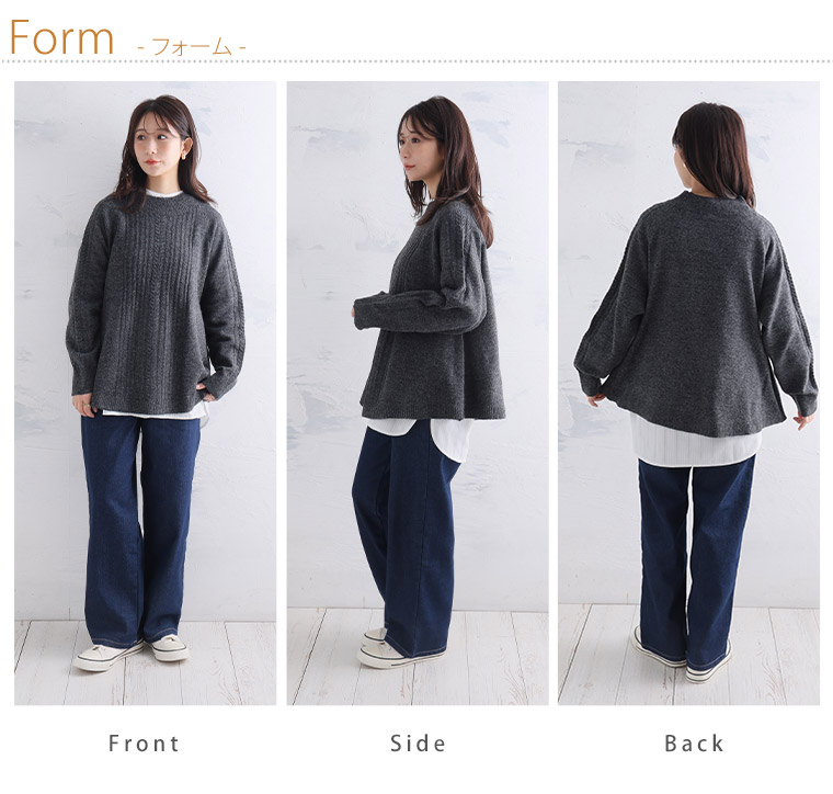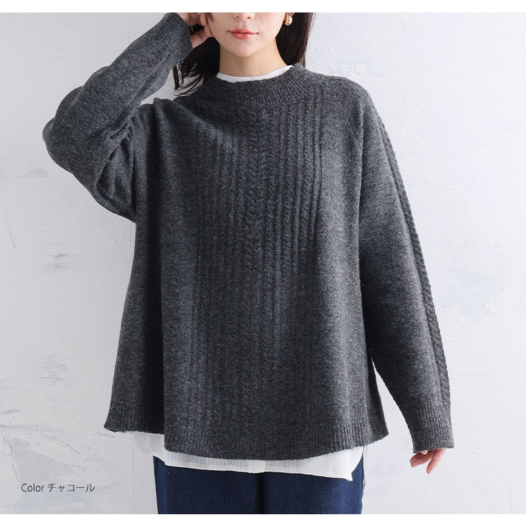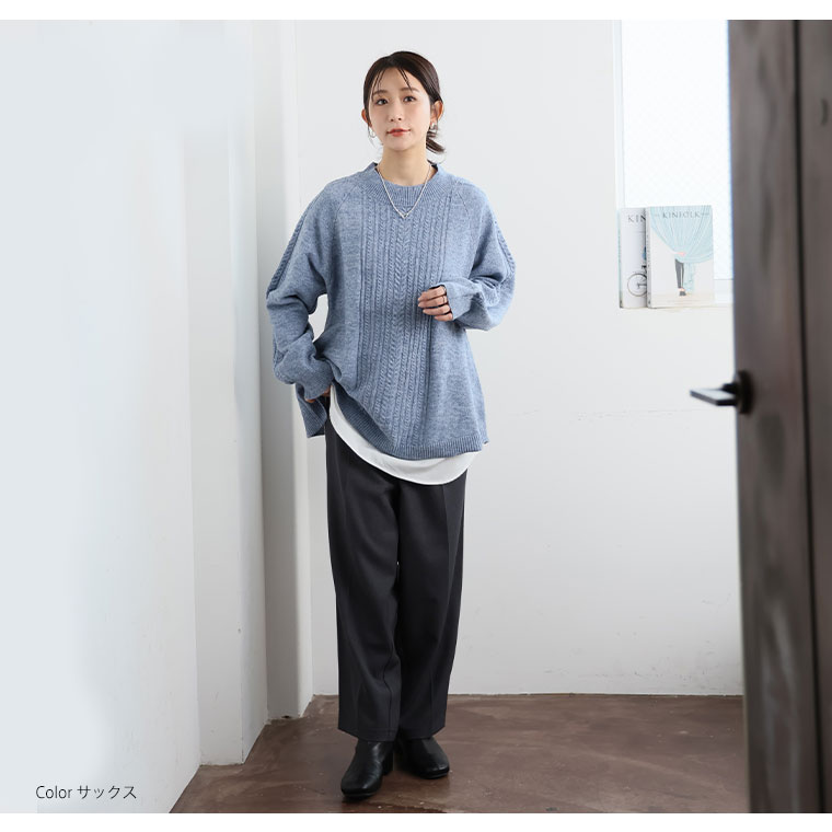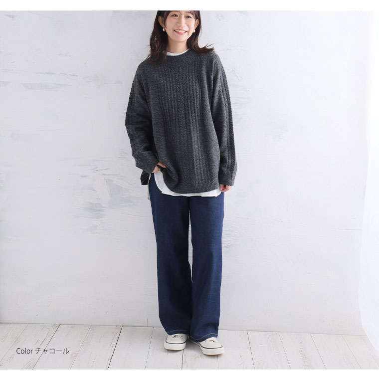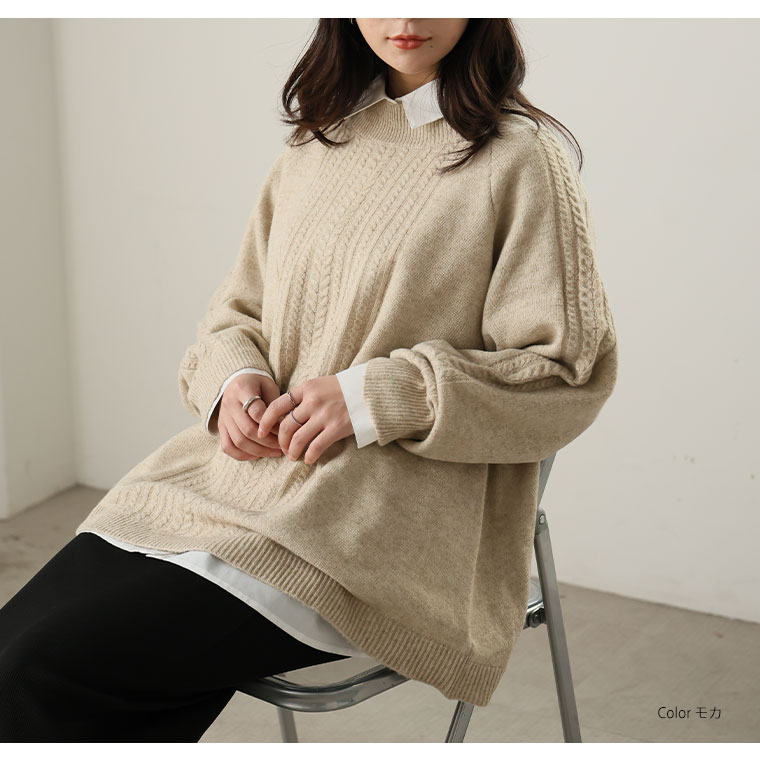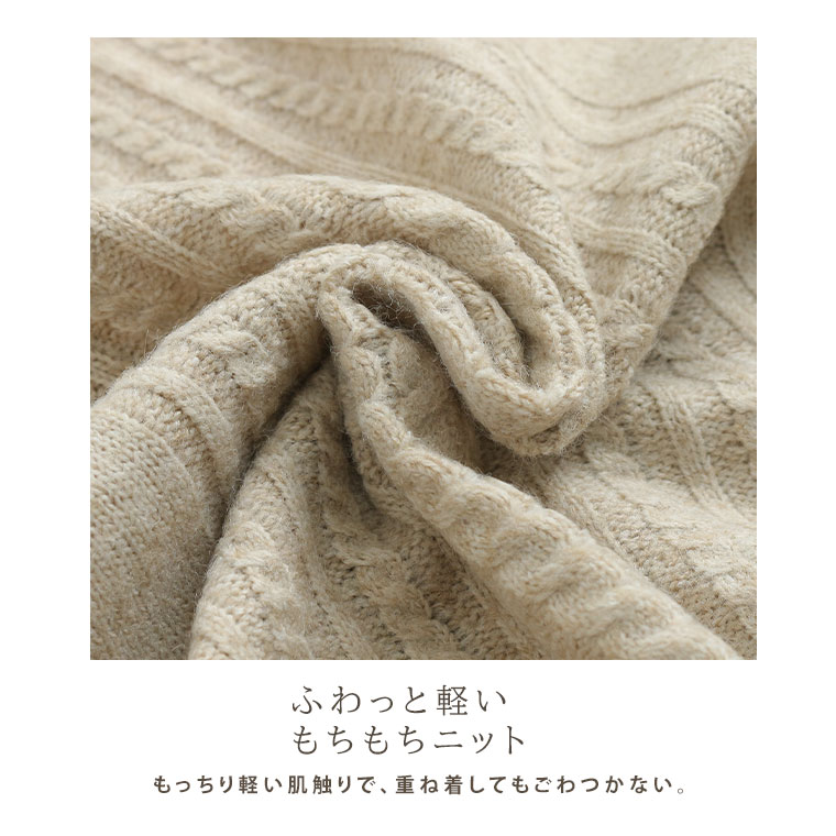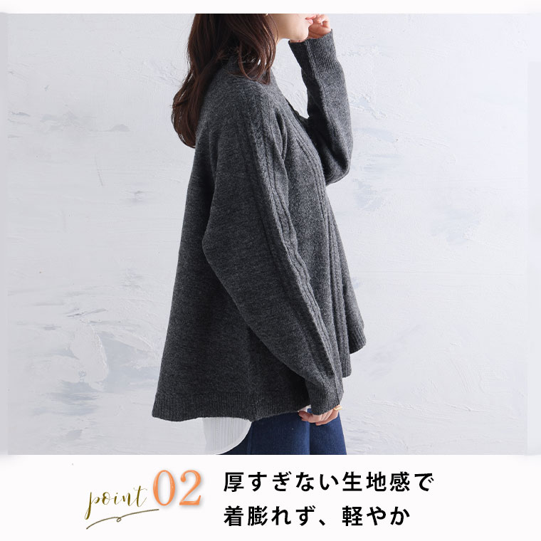 着痩せてふんわり着れるケーブルニット