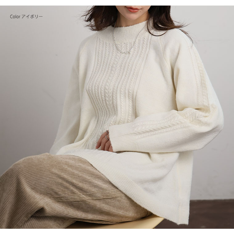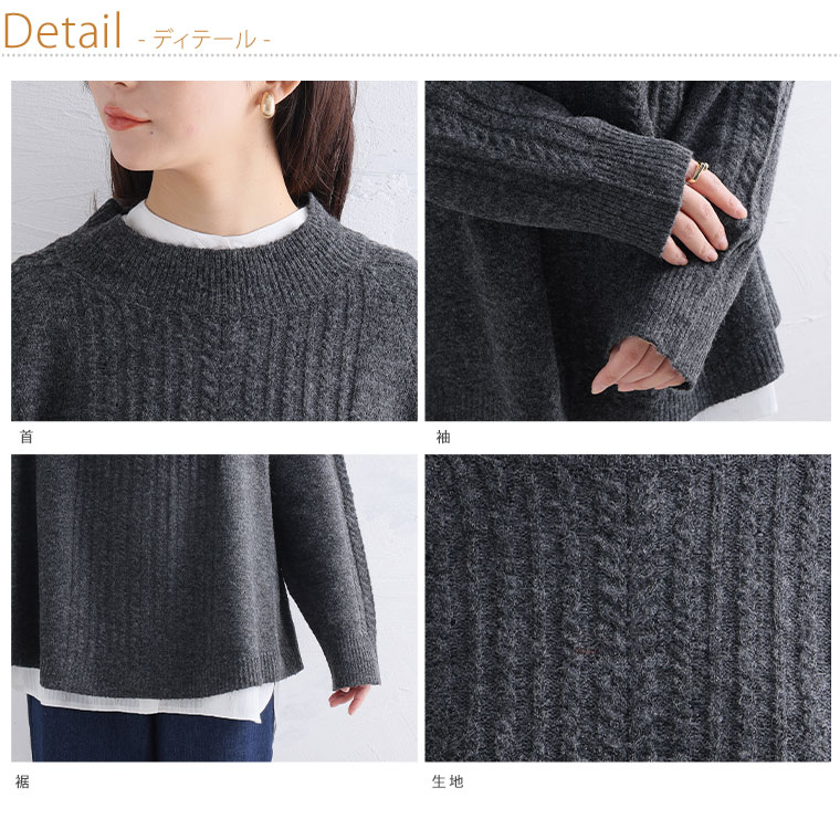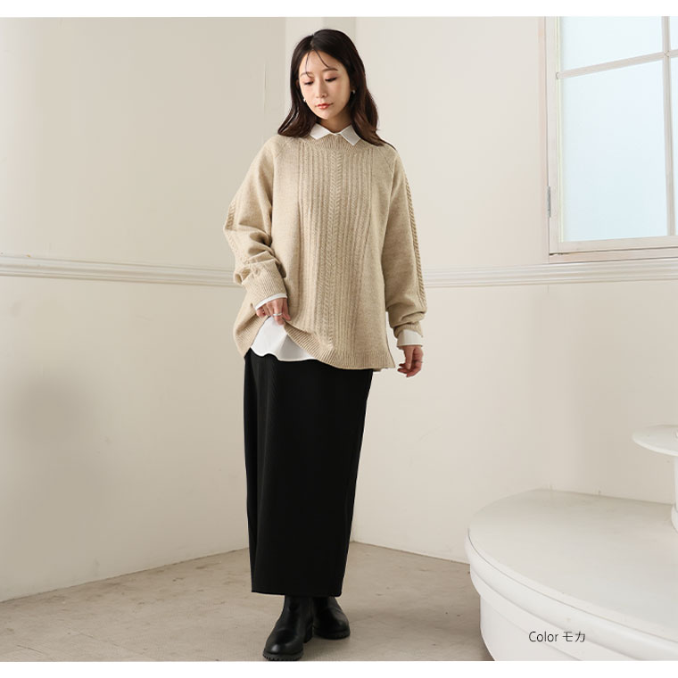 4. 大きいサイズ 【新作◆12月10日販売】 Aライン ケーブルニット プルオーバー