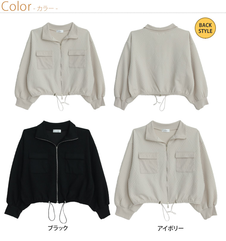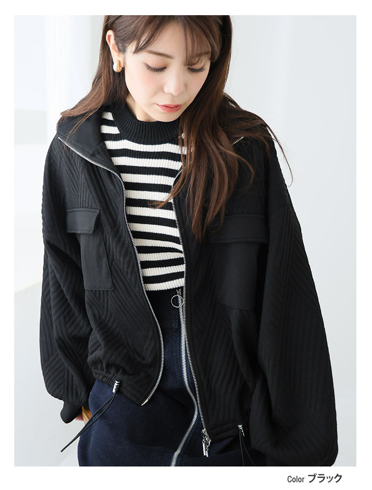 4. 大きいサイズ 【新作◆2月7日販売】 伸びてお洒落 幾何柄 アウトポケット ブルゾン | 大きいサイズの通販ならハッピーマリリン
