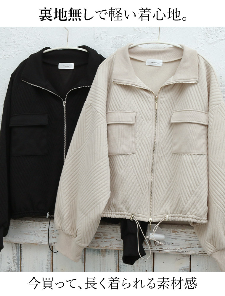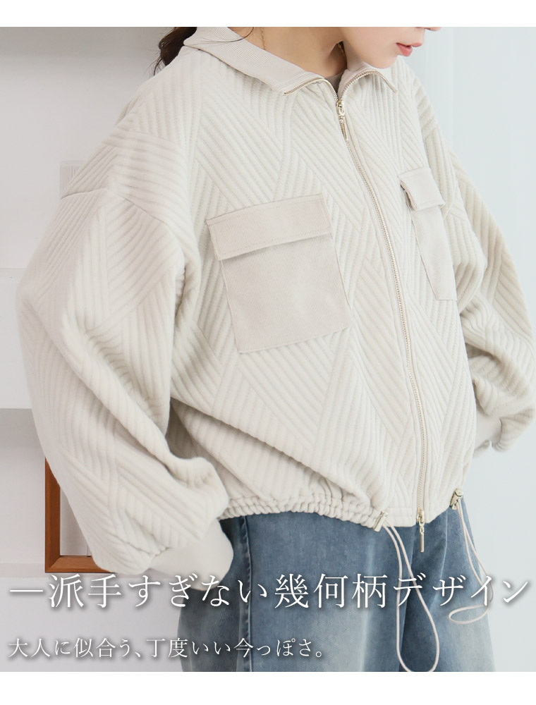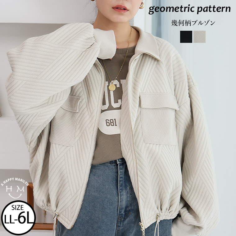 大きいサイズ 【新作◆2月7日販売】 伸びてお洒落 幾何柄 アウトポケット ブルゾン | 大きいサイズの通販ならハッピーマリリン