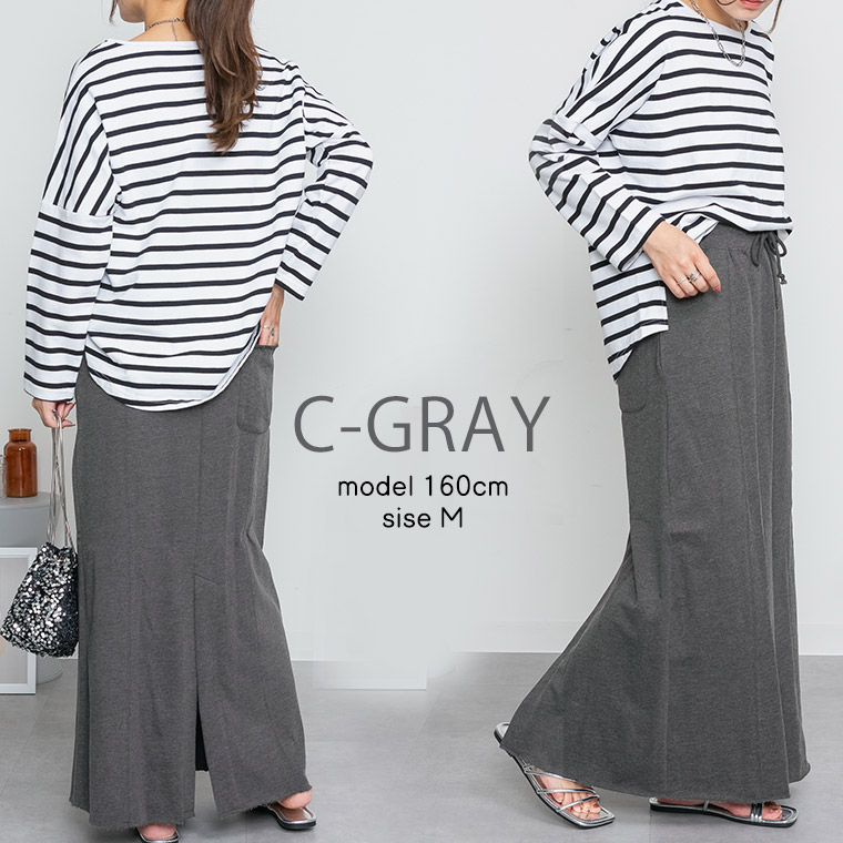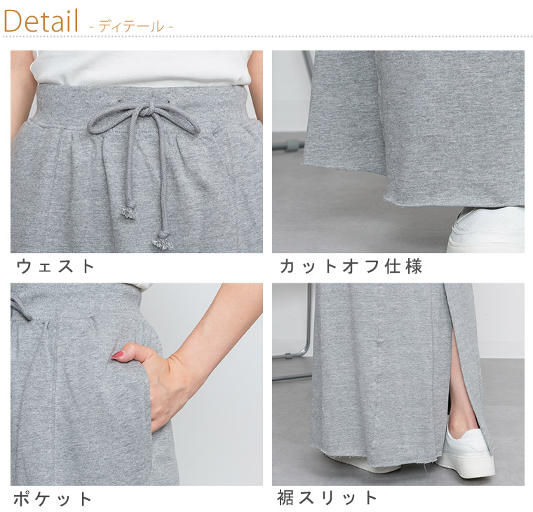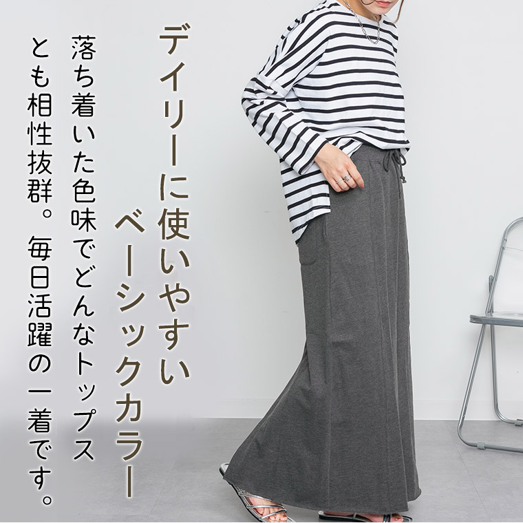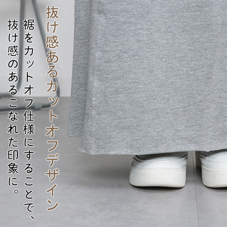 大人のこなれ感漂う、ミニ裏毛マキシ丈スカート