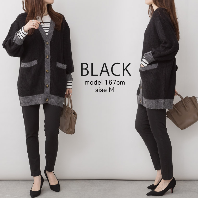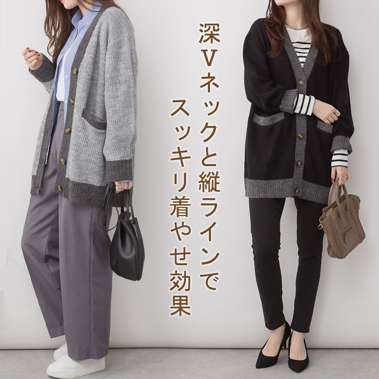 6. 大きいサイズ 【取】 【新作◆11月21日販売】 コンビネーションカラー Vネック カーディガン