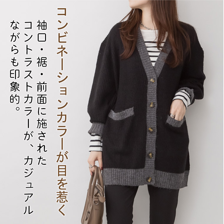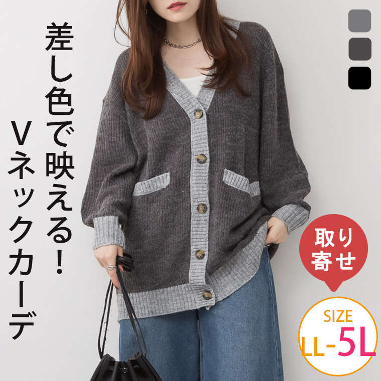 3. 大きいサイズ 【取】 【新作◆11月21日販売】 コンビネーションカラー Vネック カーディガン