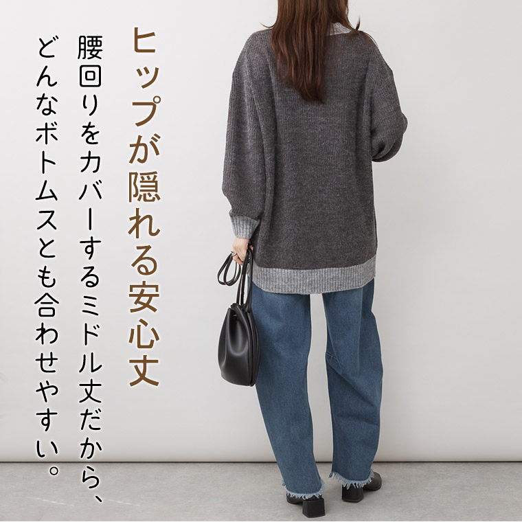 カーデガン 羽織り ニット セーター ヒップカバー LL 3L 4L 5L 長袖 冬 冬物 冬服 ぽっちゃり ゆったり プラスサイズ かわいい お腹 お尻 二の腕カバー 【取】 【新作◆11月21日販売】 コンビネーションカラー Vネック カーディガン