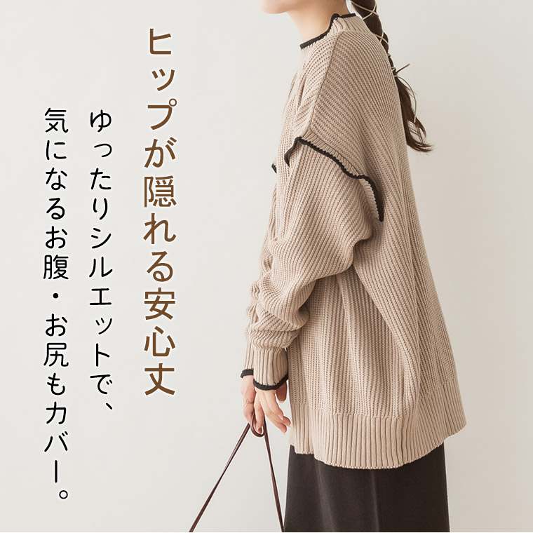 セーター トップス LL 3L 4L 5L 長袖 冬 冬物 冬服 ぽっちゃり ゆったり プラスサイズ かわいい おしゃれ カジュアル ナチュラル お尻 【取】 【新作◆12月3日販売】 ハイネック 配色 ボリューム ニット
