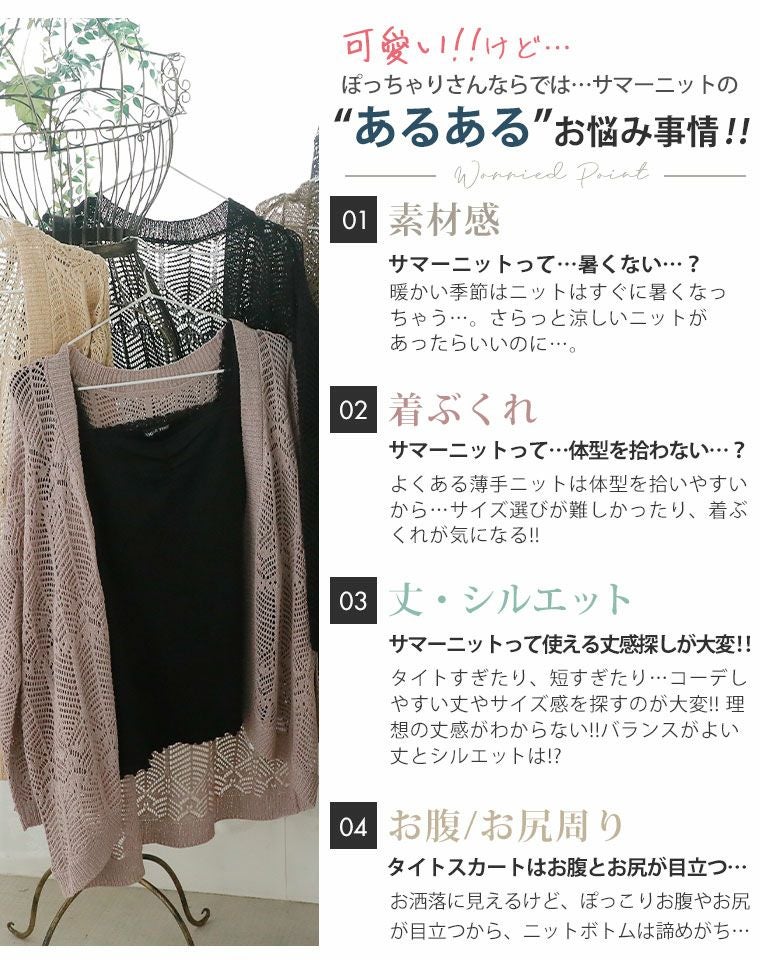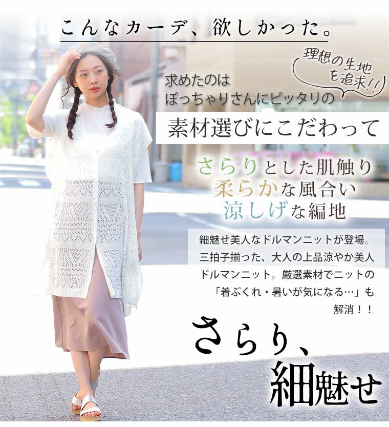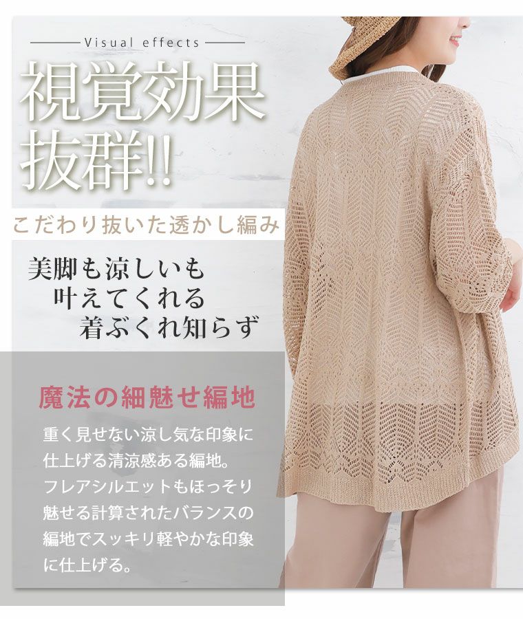 他の画像を見る オリジナル トップス カーデ 羽織り LL 3L 4L 5L 6L 夏 夏物 夏服 夏用 ぽっちゃり ゆったり かわいい おしゃれ カジュアル さらりと心地よい!涼やか 透かし編み 細魅せ美人 ニットカーデ | 大きいサイズの通販ならハッピーマリリン 価格 ¥ 2,790 税込 4.11 在庫切れ お気に入りに登録する