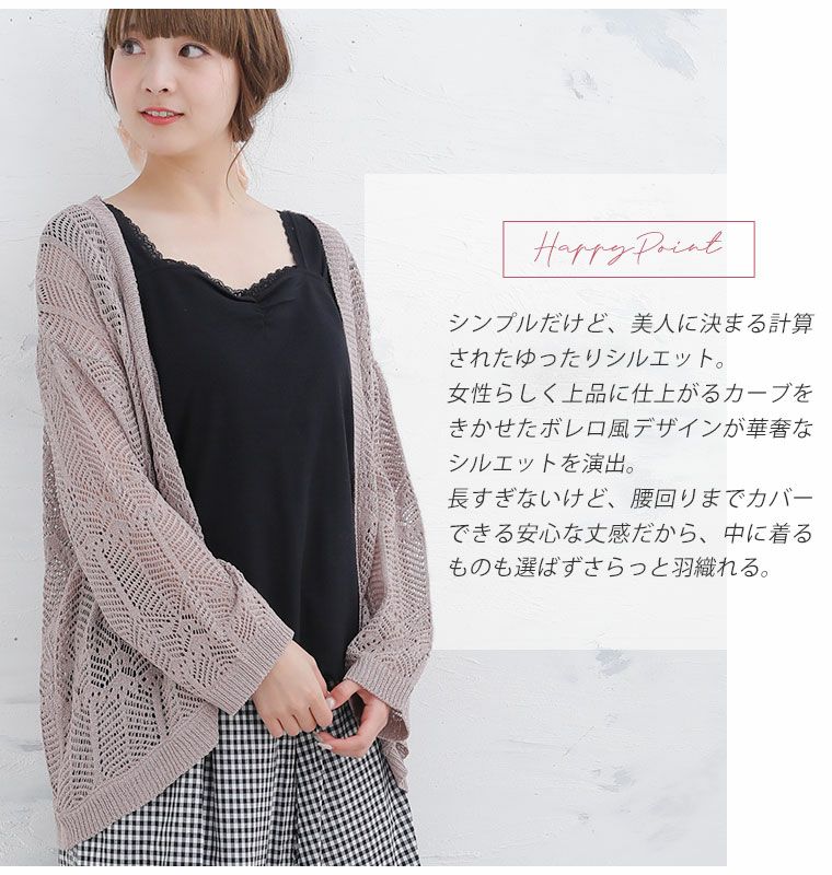 他の画像を見る オリジナル トップス カーデ 羽織り LL 3L 4L 5L 6L 夏 夏物 夏服 夏用 ぽっちゃり ゆったり 胸周り 二の腕カバー 腰周り かわいい さら.りと心地よい!涼やか 透かし編み 細魅せ美人 ニット ボレロ | 大きいサイズの通販ならハッピーマリリン 価格 ¥ 2,790 税込 4.36 在庫切れ お気に入りに登録する