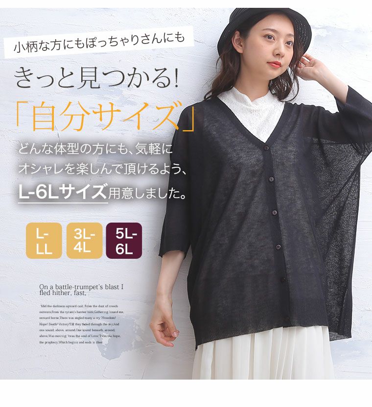 他の画像を見る オリジナル トップス カーデ 羽織り LL 3L 4L 5L 6L 夏 夏物 夏服 夏用 ぽっちゃり ゆったり 七分袖 かわいい おしゃれ カジュアル ナチュラル シャリっと夏に快適 Vネック 麻混 カーディガン | 大きいサイズの通販ならハッピーマリリン 価格 ¥ 2,990 税込 4.50 在庫切れ お気に入りに登録する