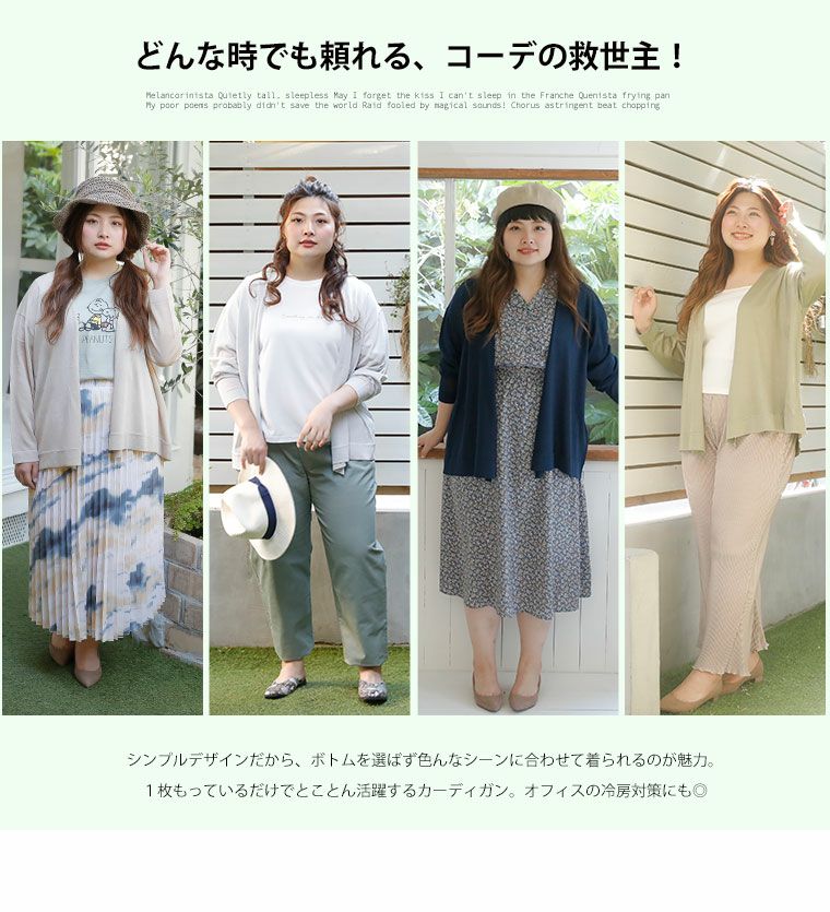 他の画像を見る オリジナル トップス 羽織り LL 3L 4L 5L 6L 夏 夏物 夏服 夏用 ゆったり 長袖 ひんやり快適!夏に嬉しい5つの機能! 接触冷感・制菌防臭・UV 着回しに便利な シンプル Vネック サマーニット カーデ | 大きいサイズの通販ならハッピーマリリン 価格 ¥ 2,490 税込 4.33 在庫切れ お気に入りに登録する