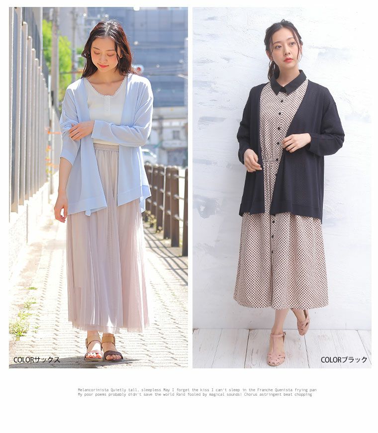 他の画像を見る オリジナル トップス 羽織り LL 3L 4L 5L 6L 夏 夏物 夏服 夏用 ゆったり 長袖 ひんやり快適!夏に嬉しい5つの機能! 接触冷感・制菌防臭・UV お洒落美人な バックギャザー サマーニット カーデ | 大きいサイズの通販ならハッピーマリリン 価格 ¥ 2,990 税込 4.33 在庫切れ お気に入りに登録する