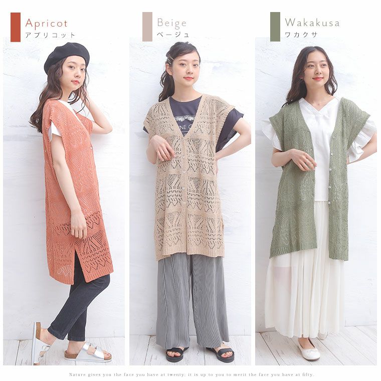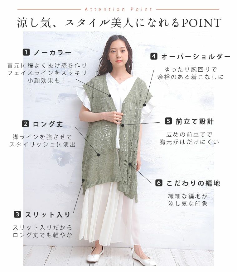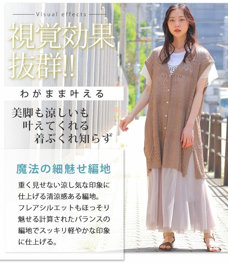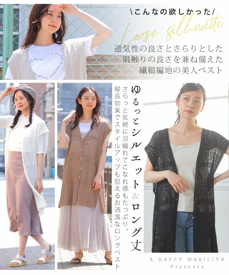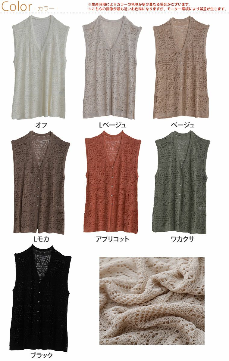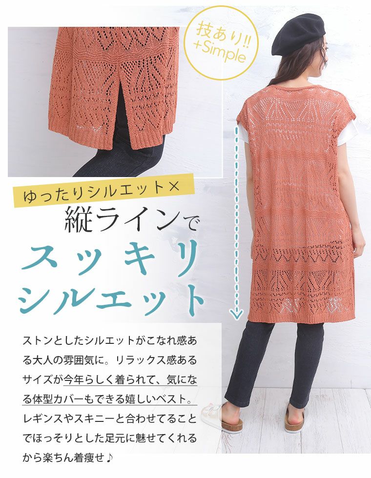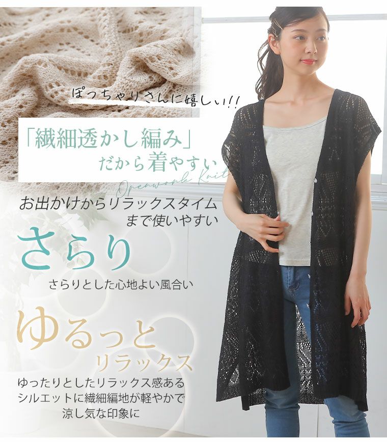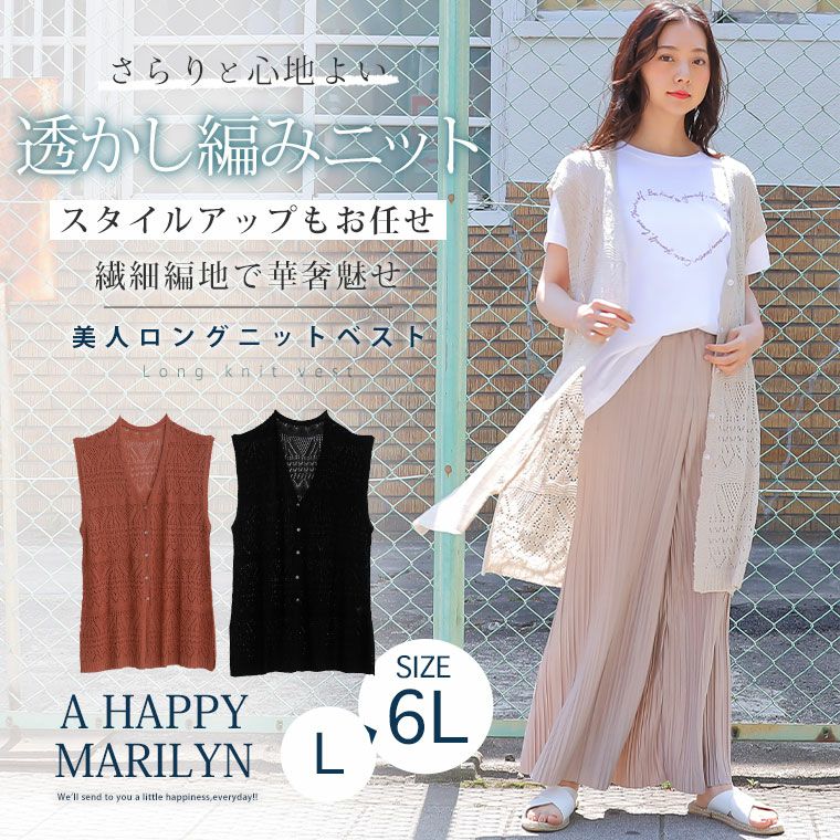 他の画像を見る オリジナル ニットベスト LL 3L 4L 5L 6L 夏 夏物 夏服 夏用 ぽっちゃり ゆったり お腹 胸周り お尻 腰周り かわいい おしゃれ さらりと心地よい!涼やか 透かし編み 細魅せ ロング ニット べスト | 大きいサイズの通販ならハッピーマリリン 価格 ¥ 2,490 税込 4.44 在庫切れ お気に入りに登録する