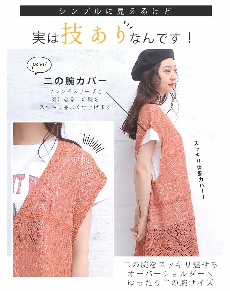 他の画像を見る オリジナル トップス コーディネイト LL 3L 4L 5L 6L 夏 夏物 夏服 夏用 ぽっちゃり ゆったり 半袖 さらりと心地よい 涼やか 透かし編み コットンタッチ 華奢魅せ ベスト & Tシャツ セット 綿タッチ | 大きいサイズの通販ならハッピーマリリン 価格 ¥ 3,190 税込 4.10 在庫切れ お気に入りに登録する