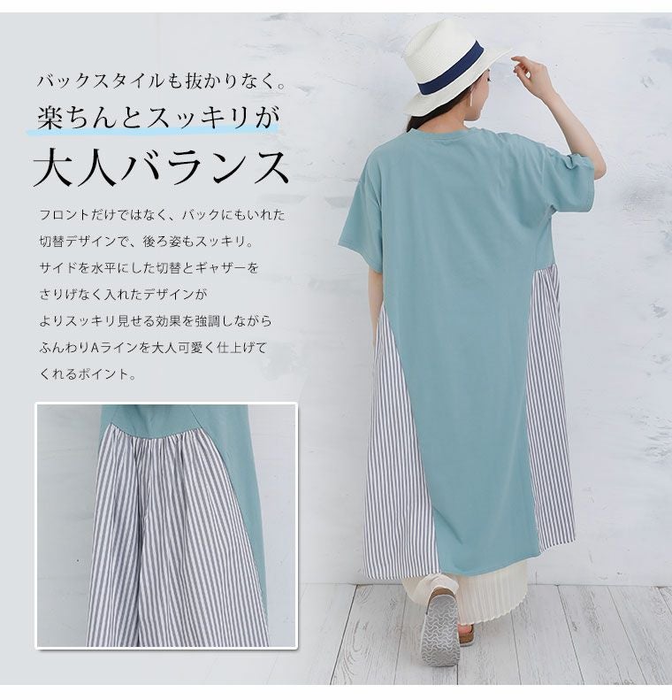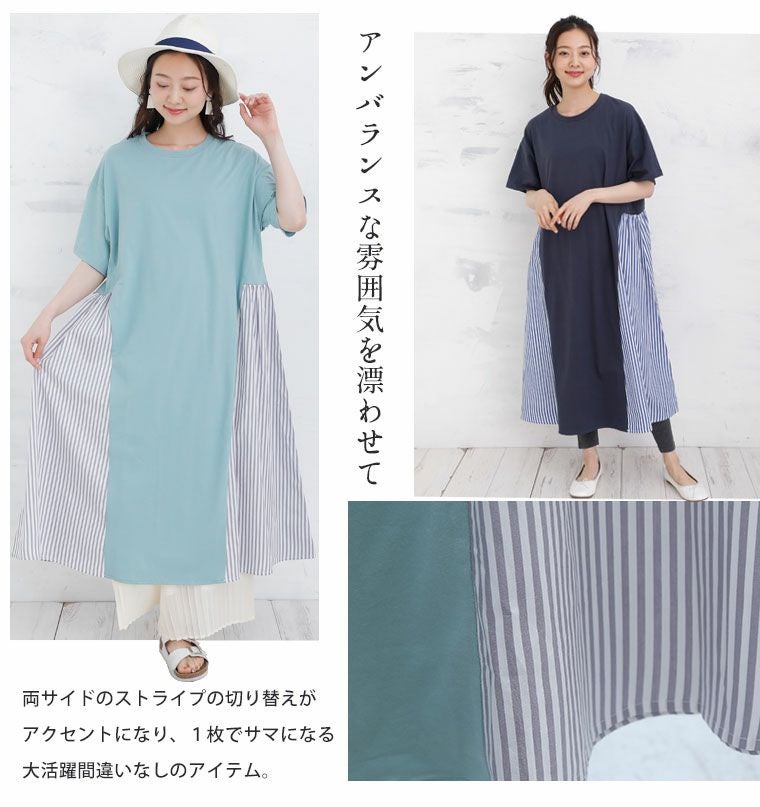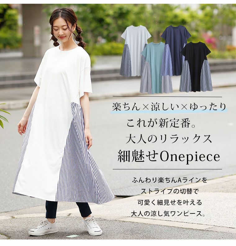 他の画像を見る ワンピ デザインワンピ LL 3L 4L 5L 6L 7L 8L 9L 10L 夏 夏物 夏服 夏用 ゆったり お腹 太もも 胸周り 二の腕カバー お尻 腰周り ゆったり楽ちん! 綿天竺 × ストライプ 切替 Aライン 半袖 ワンピース | 大きいサイズの通販ならハッピーマリリン 価格 ¥ 3,190 税込 4.33 在庫切れ お気に入りに登録する