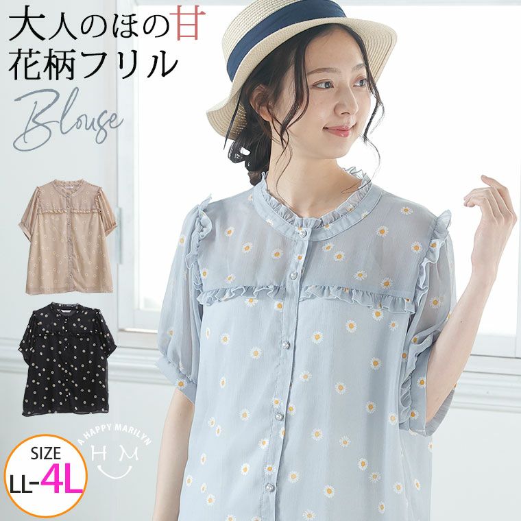 他の画像を見る シャツ トップス LL 3L 4L 夏 夏物 夏服 夏用 ぽっちゃり ゆったり かわいい おしゃれ カジュアル ナチュラル きれいめ 上品 ガーリー デイジー柄 フリルブラウス | 大きいサイズの通販ならハッピーマリリン 価格 ¥ 2,990 税込 4.00 在庫切れ お気に入りに登録する