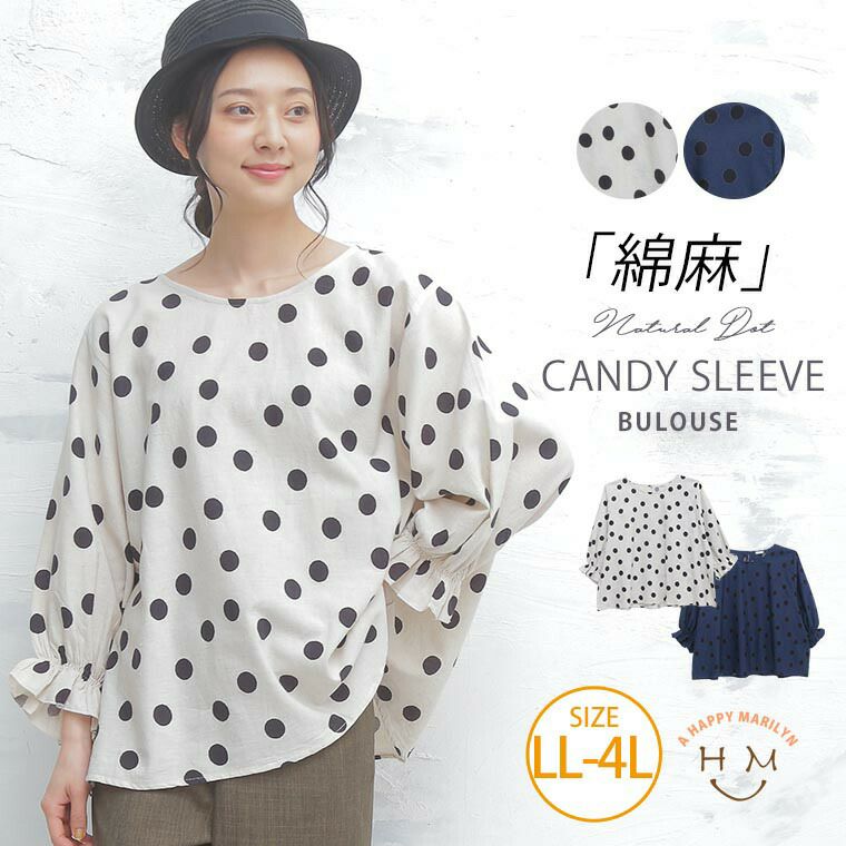他の画像を見る シャツ トップス LL 3L 4L 夏 夏物 夏服 夏用 ぽっちゃり ゆったり お腹 胸周り 二の腕カバー かわいい おしゃれ カジュアル ナチュラル 天然素材 綿麻 ドット キャンディースリーブ ブラウス | 大きいサイズの通販ならハッピーマリリン 価格 ¥ 2,790 税込 在庫切れ お気に入りに登録する