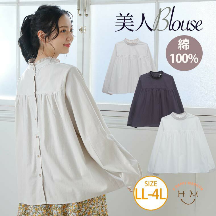 他の画像を見る シャツ トップス LL 3L 4L 春 春物 春服 ぽっちゃり ゆったり お腹 胸周り かわいい おしゃれ カジュアル ナチュラル きれいめ 上品 ガーリー プチハイ 襟フリル ブラウス | 大きいサイズの通販ならハッピーマリリン 価格 ¥ 2,990 税込 5.00 在庫切れ お気に入りに登録する