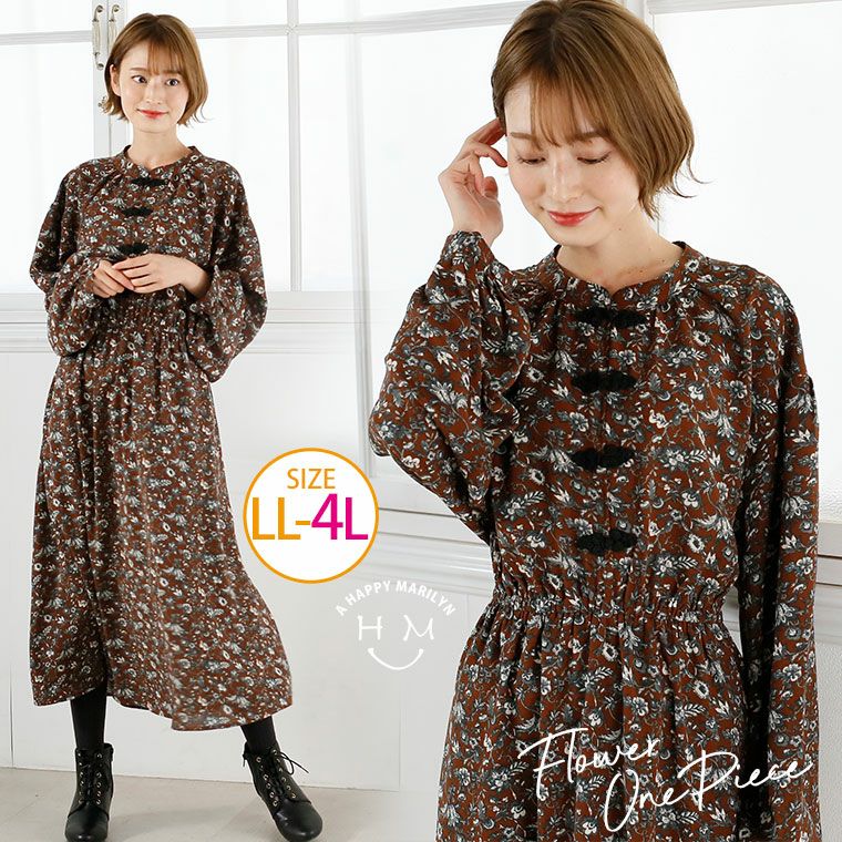 他の画像を見る ワンピ デザインワンピ LL 3L 4L 冬 冬物 冬服 ぽっちゃり ゆったり かわいい おしゃれ デシン 花柄 プリント チャイナボタン ロングワンピース OHS | 大きいサイズの通販ならハッピーマリリン 価格 ¥ 3,990 税込 在庫切れ お気に入りに登録する