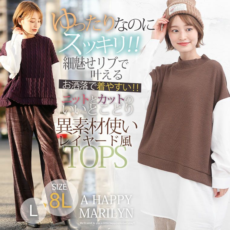 他の画像を見る オリジナル カットソー LL 3L 4L 5L 6L 7L 8L 冬 冬物 冬服 ゆったり ニット と カット のいいとこどり!選べる2タイプ 着ぶくれ回避 のレイヤード風 デザイン トップス リブ ケーブル | 大きいサイズの通販ならハッピーマリリン 価格 ¥ 2,190 税込 4.25 在庫切れ お気に入りに登録する