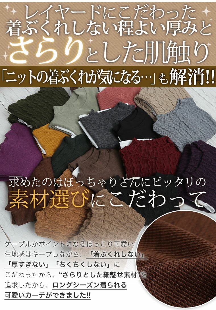 他の画像を見る オリジナル カーデ 羽織り LL 3L 4L 5L 6L 7L 8L 冬 冬物 冬服 ぽっちゃり ゆったり お腹 太もも 胸周り 二の腕カバー お尻 腰周り 長袖 裏起毛 スナップボタン カーディガン レギュラー丈 | 大きいサイズの通販ならハッピーマリリン 価格 ¥ 2,490 税込 4.29 在庫切れ お気に入りに登録する