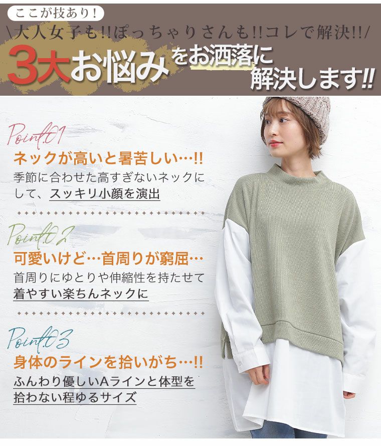 他の画像を見る トップス ブラウス シャツ ニット LL 3L 4L 冬 冬物 冬服 ぽっちゃり ゆったり かわいい おしゃれ カジュアル ナチュラル モックネック ニット ドッキング シャツ | 大きいサイズの通販ならハッピーマリリン 価格 ¥ 2,990 税込 4.25 在庫切れ お気に入りに登録する